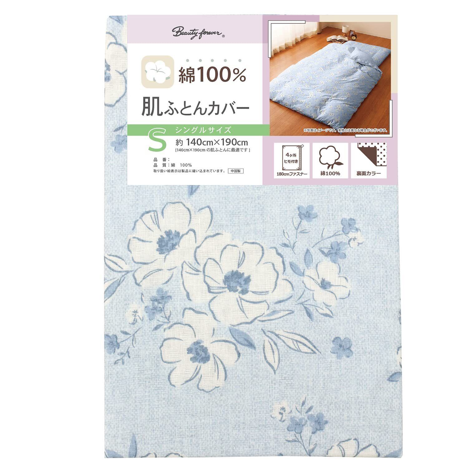 メリーナイト 肌布団カバー ガーゼ 「アネモネ」 ブルー 約140×190cm 綿100% ふんわりやさしい肌触り 吸水性 通気性 軽量 洗える 夏用寝具 CT14013-76 | BASE SHOP