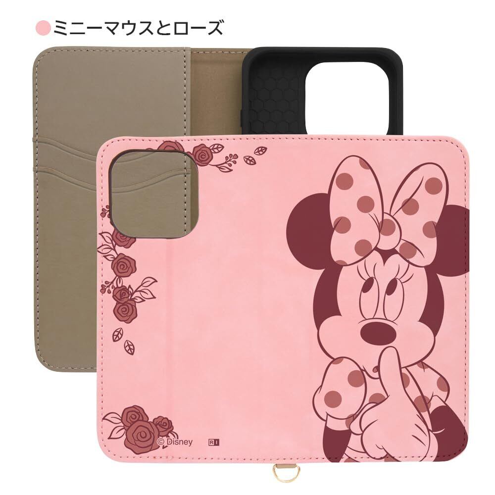 イングレム iPhone 15 Pro ケース ディズニー 手帳型レザーケース Raffine ミニーマウスとローズ
