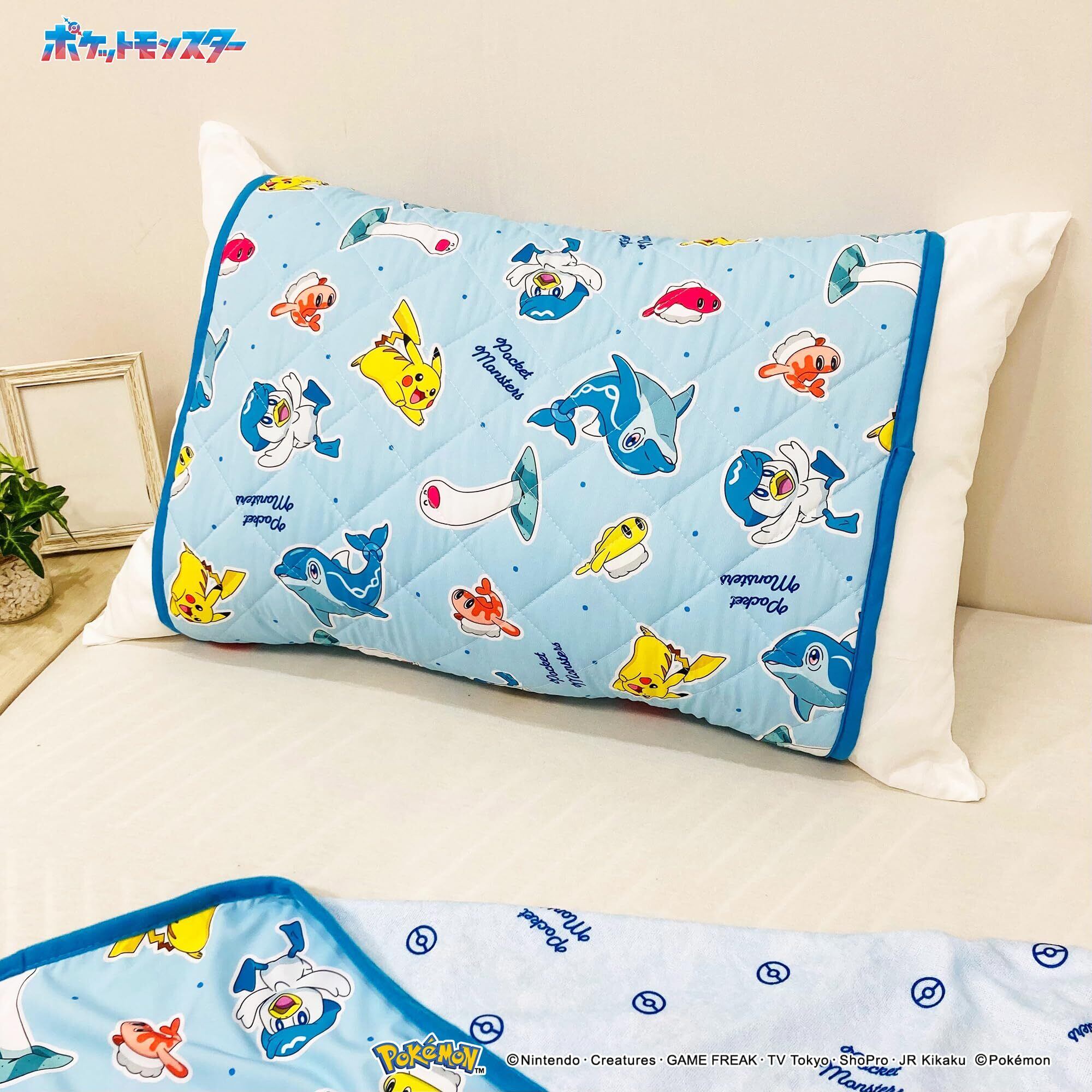 MORIPiLO 枕カバー 43 63 ポケモン ピカチュウ グッズ (親子で使える 洗える ピローケース) 大人 子供 兼用 夏用 冷感パッド ファスナー式 可愛い キャラクター pillow case ポケットモンスター ブルー 43x63cm まくらのモリシタ 4621387
