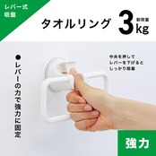 レバー式 強力 吸盤 タオルリング グレー 全長 18cm(干幅16cm) 耐荷重3kg
