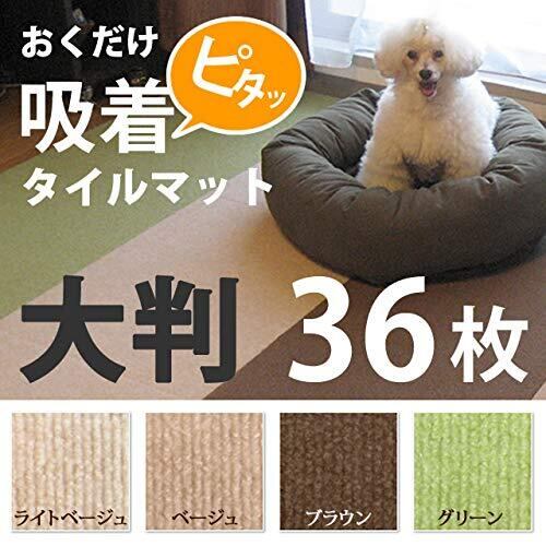 6畳用大判タイプ おくだけ撥水吸着 タイルマット 60cm×45cm 36枚セット ベージュ 撥水加工 洗濯可