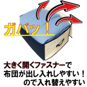 【大きく開くファスナー】上部に大きく開くファスナー付きでかさばる布団も出し入れしやすい!大きめのファスナーを使用し更に使いやすく。