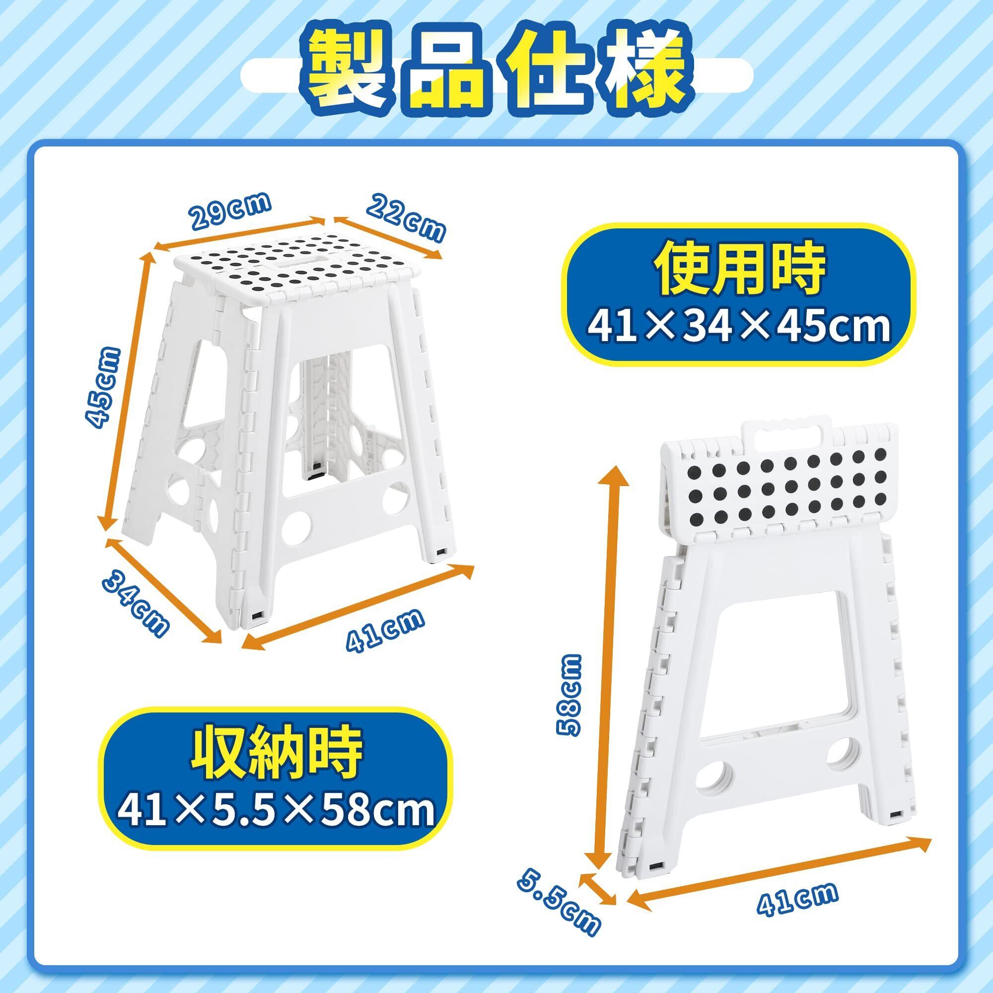【たたむと5.5cm!超薄収納】チチロバ (TITIROBA) 踏み台 折りたたみ 高さ45cm ステップ スツール脚立 洗車 釣り 室内 アウトドア 耐荷重100kg 滑り止め付 折りたたみチェア フォールディング ホワイト 22AA008 | BASE SHOP