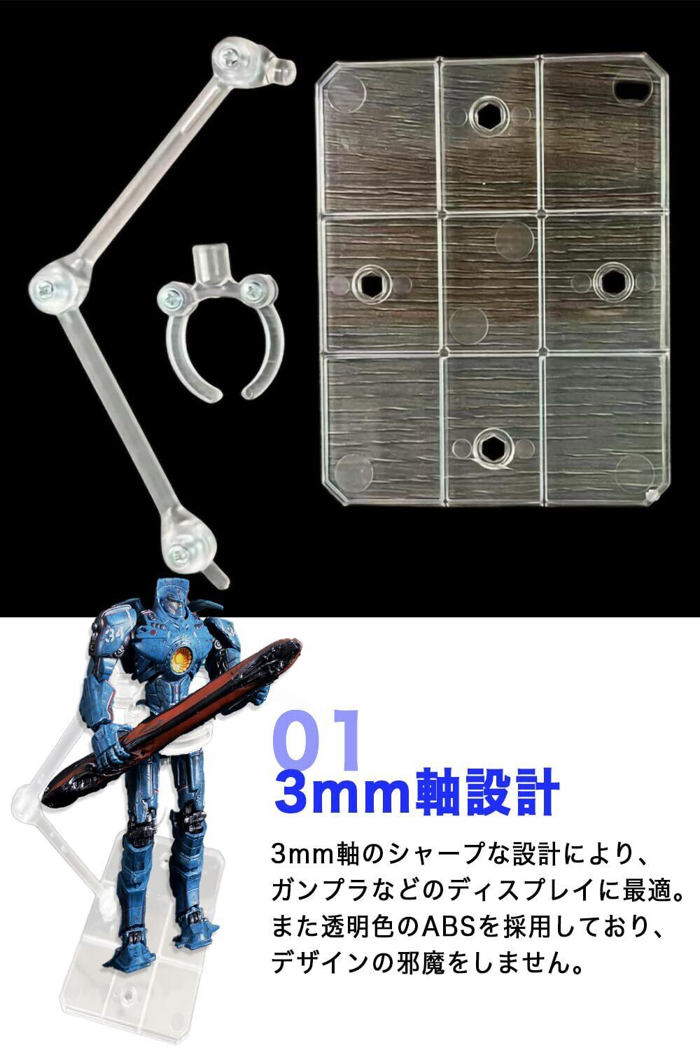 HG 1/144 サイズのガンプラなどのディスプレイにおすすめ。3mm軸タイプなので、ガンプラの接続軸との互換性があります。
