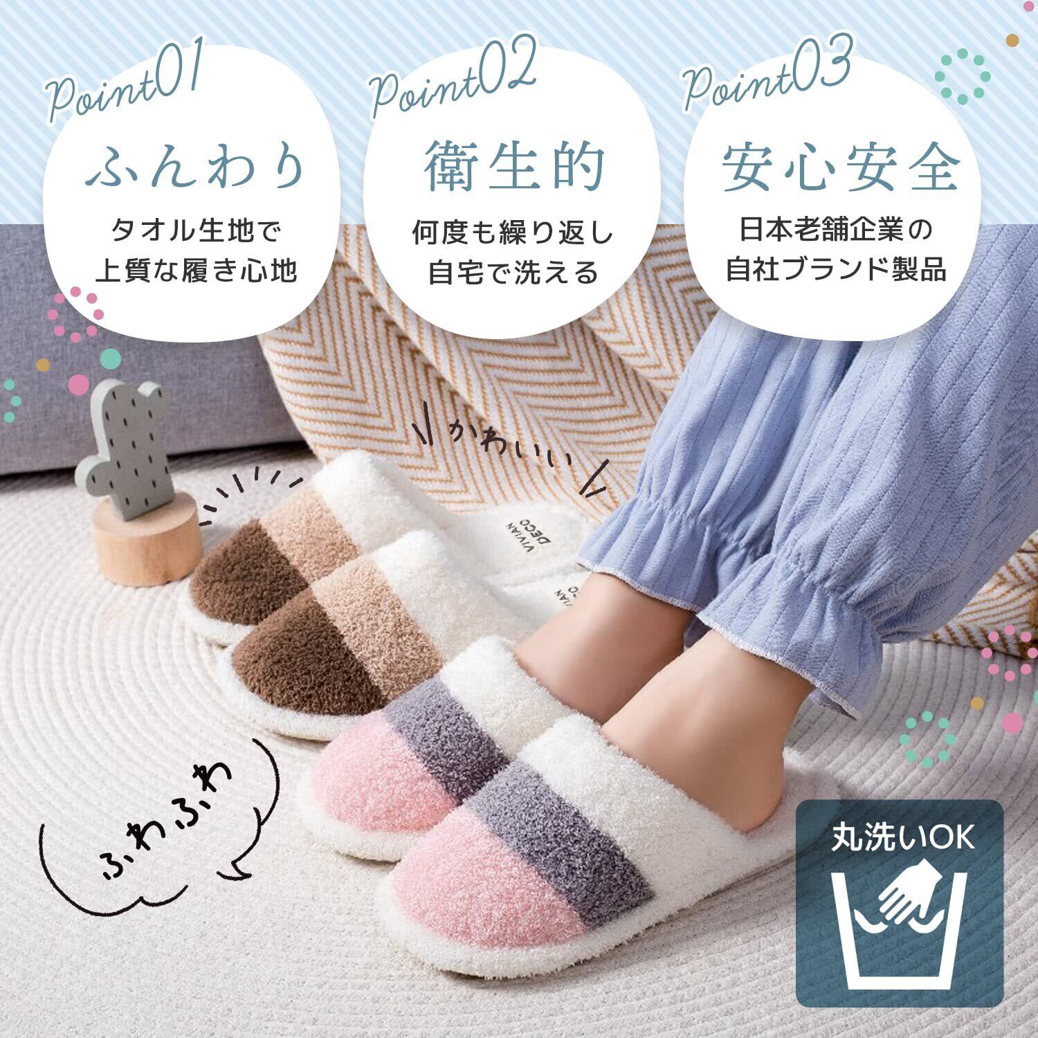 [VIVIAN DECO] 洗える スリッパ 室内 北欧 おしゃれ かわいい さらさら レディース 夏用 トイレ タオル パイル (日本国内検品)