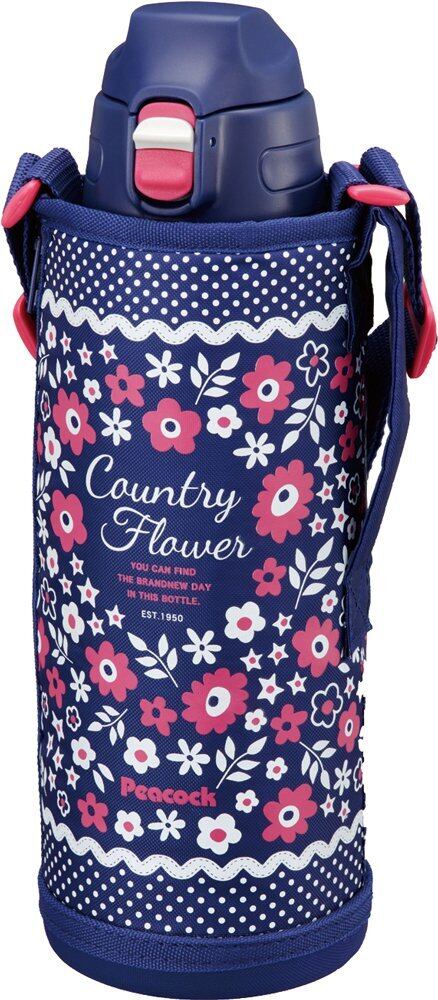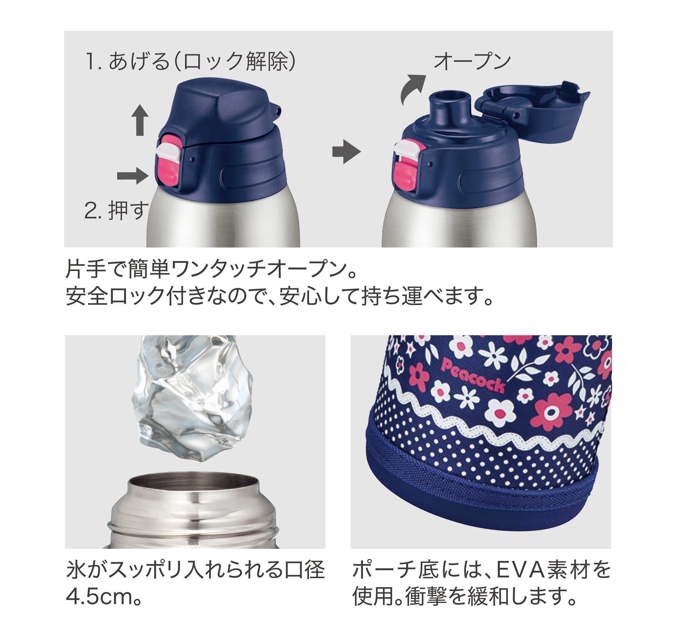 ピーコック魔法瓶工業(The-peacock) ピーコック 水筒 キッズ 1000ml 保冷 ワンタッチ 直飲み 子供 ダイレクトボトル ポーチ付き 1l ネイビーフラワー AJC-F101 AKF | BASE SHOP