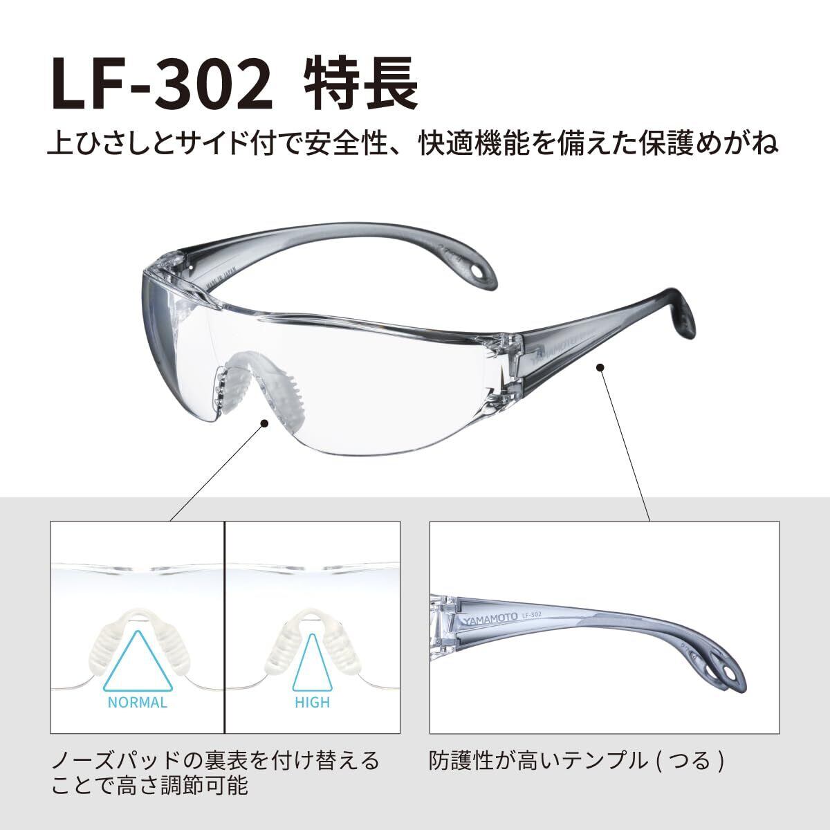 [山本光学] YAMAMOTO LF-302 ライトフィット保護めがね L-FIT2 上部ひさしカバー付き 双球面レンズ クリアグレー PET-AF(両面ハードコートくもり止め) 日本製 JIS 紫外線カット