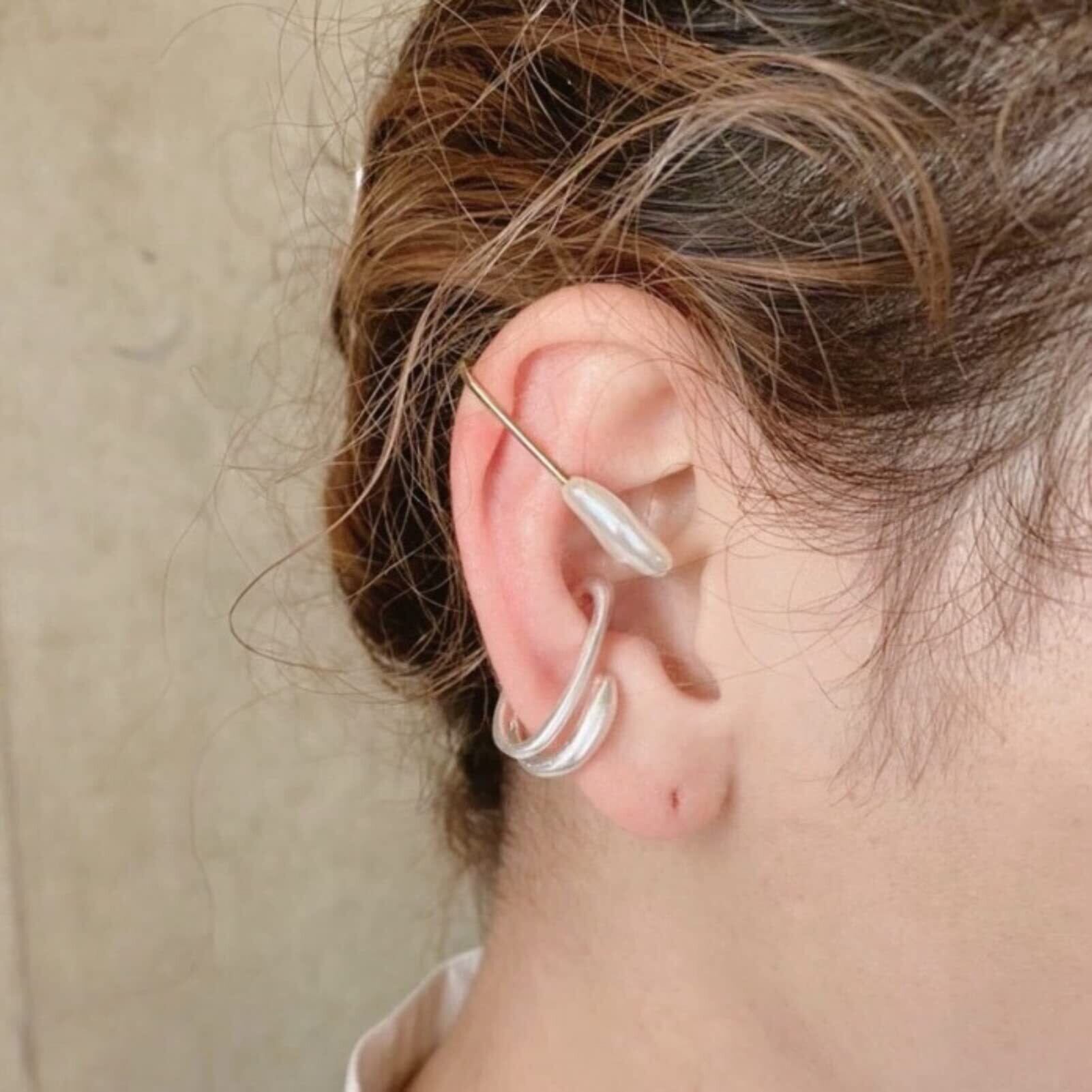 Moonstan イヤーカフ レディース 人気 イヤカフ イヤーカフス ゴールド シルバー 2連 つや消し 金属アレルギー対応