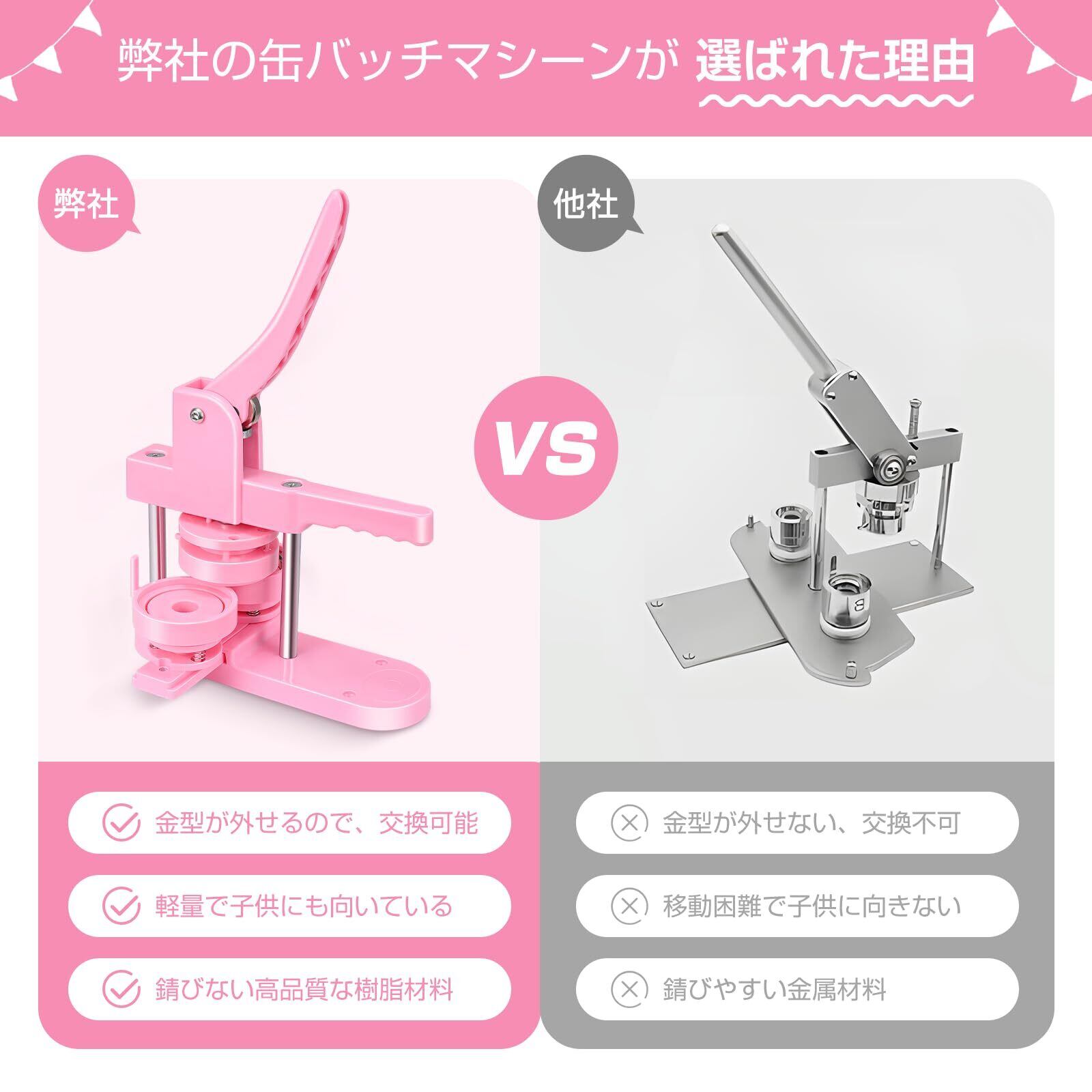 缶バッジメーカー 58mm 缶バッジマシーン 缶バッヂ製造機 缶バッチマシーン DIYバッジマシン バッジ素材100個付き 小型 軽量 DIYのおもちゃ 手芸 手づくり お祝いプレゼント ピンク色