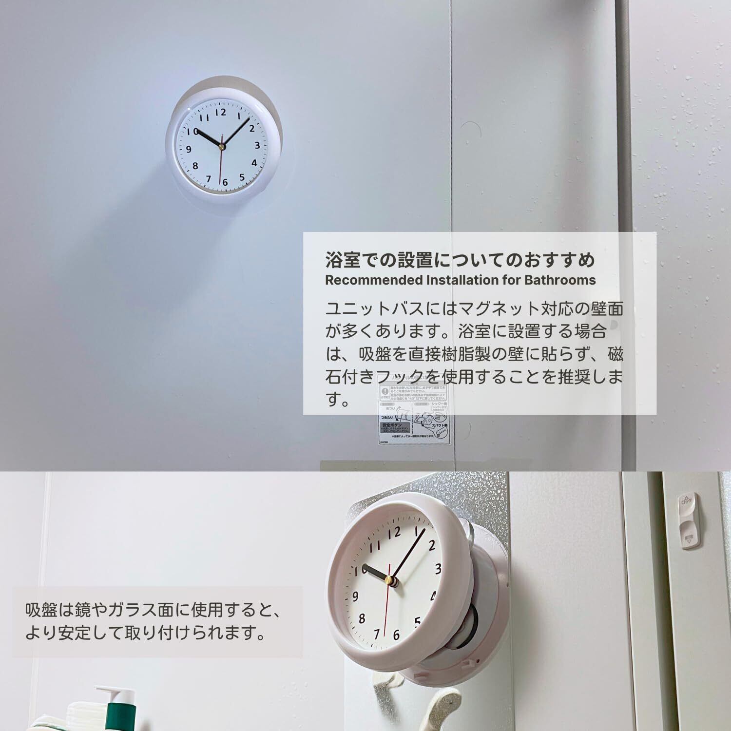 DEMI LOUS. 防水 風呂 時計 お風呂 防水時計 お風呂用 置時計 掛け時計 吸盤 兼用 3WAY ガラスに付く 吸盤付き クロック 温泉時計 キチン時計 洗面台 電池式 静音ムーブメント 置き方自在 掛け用フック 置き用スタンド 直径16cm 手ごろなサイズ (ホワイト) | BASE SHOP