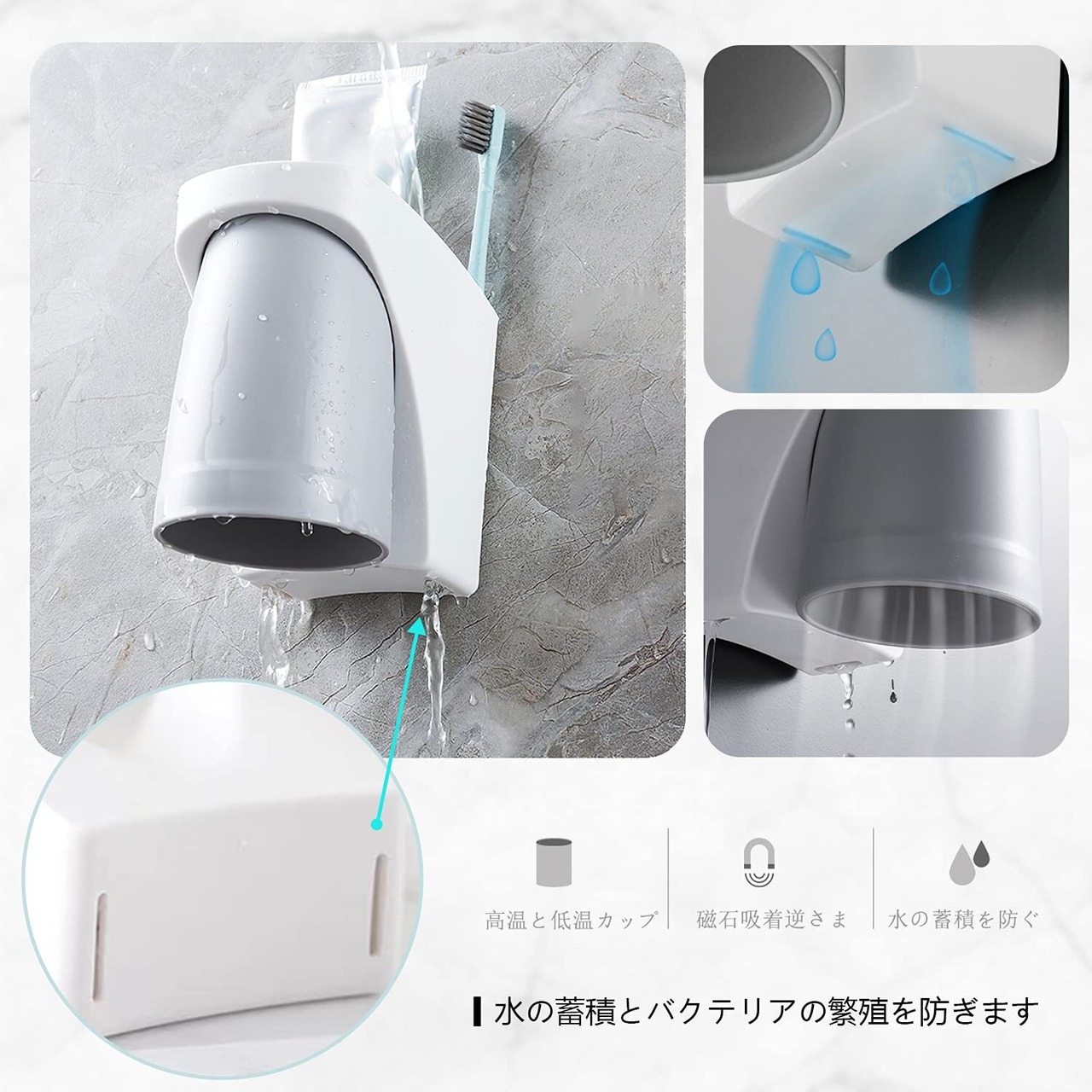 水の蓄積を防ぎ、スペースを節約します:磁気吸引設計により歯磨きコップ 逆さまに吊るし、自然に乾かしてほこりを防ぎ、バクテリアの繁殖を防ぎ、健康的で衛生的です。 歯磨き粉、歯ブラシ、カミソリの収納に便利で、収納部分には排水穴が付いています。 歯ブラシホルダー は、洗面台を清潔で衛生的に保つことができます。