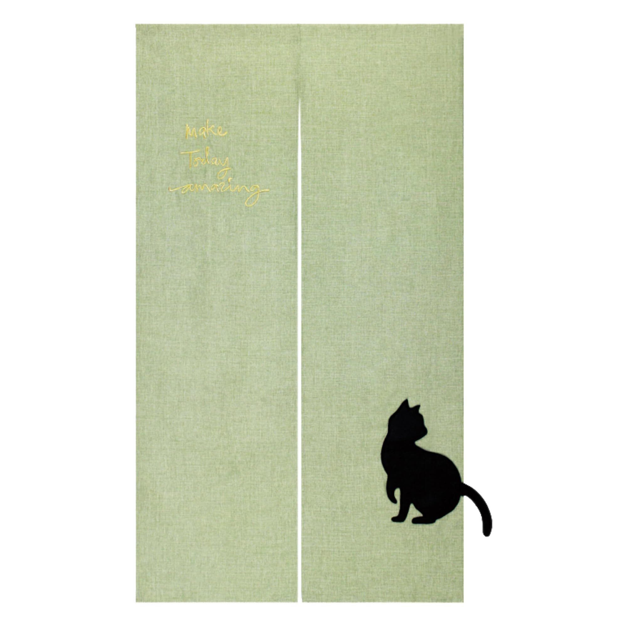 のれん 暖簾 おしゃれ カーテン 間仕切り 仕切りカーテン 目隠し 無地 muji 黒猫 猫 ねこ にゃんこ アップリケ ナチュラル アップリキャット 85×150cm