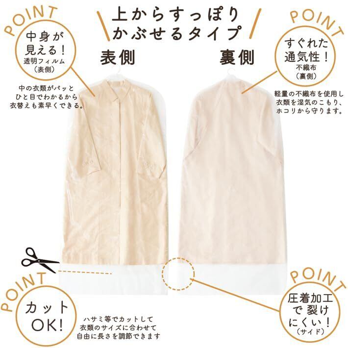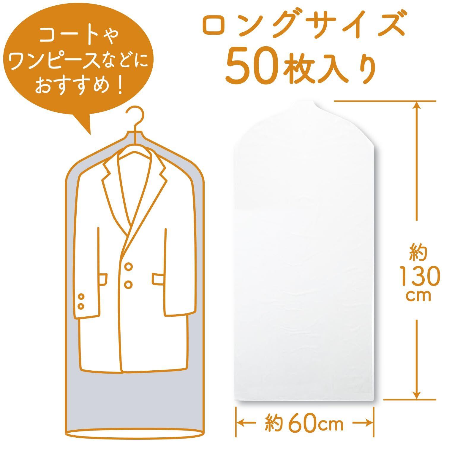 衣類カバー 洋服カバー 50枚 ロングサイズ 日本製 1枚ずつ取り出せる 片面不織布 片面フィルム [(株)フォーラル]