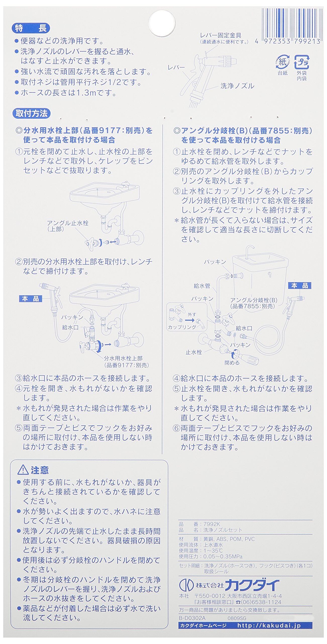 カクダイ(KAKUDAI) 洗浄ノズルセット ホース全長1.3m 7992K | BASE SHOP