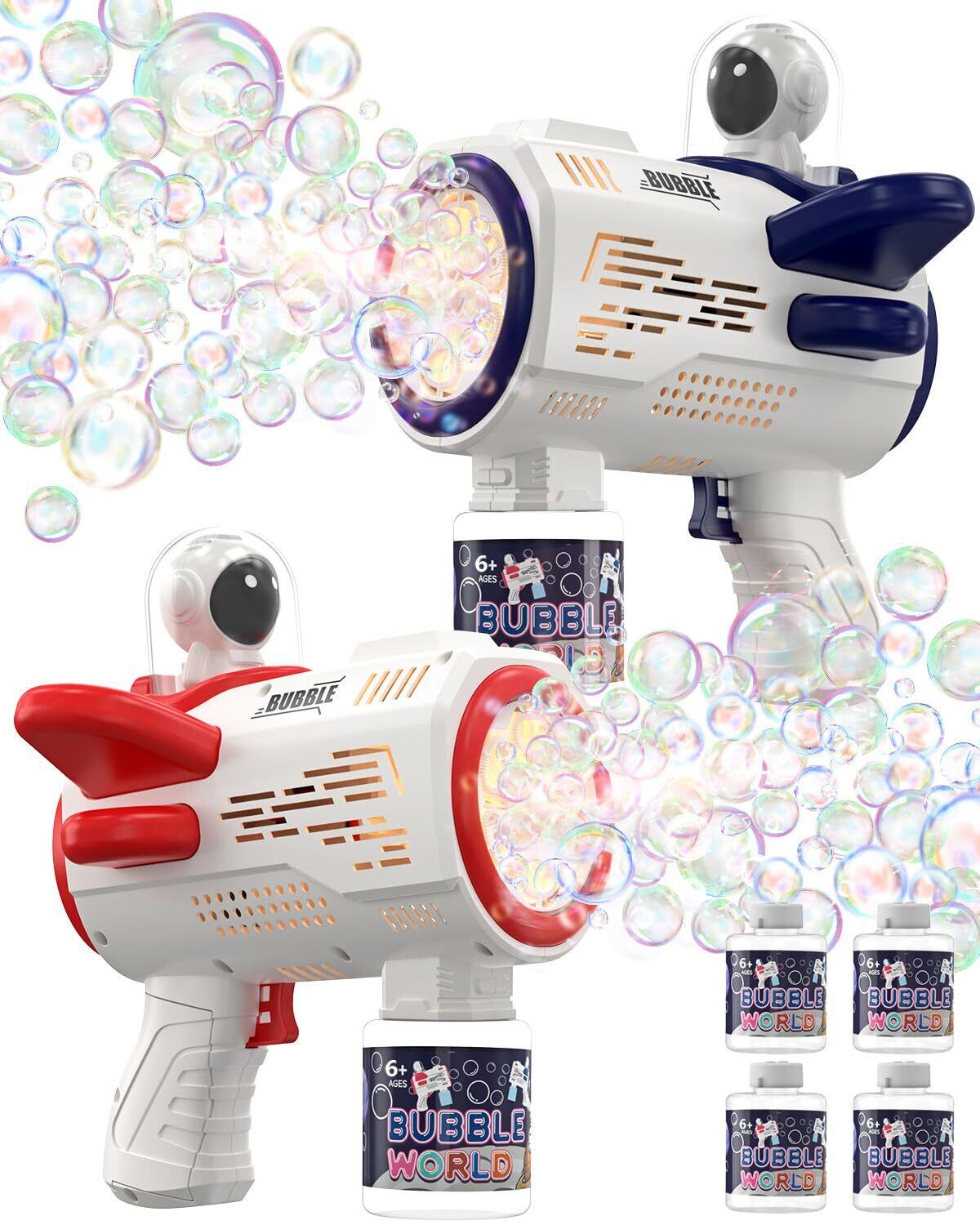 Zaahir シャボン玉 電動 2個セット 宇宙飛行士 バブルガン 予備ボトル4瓶 360°液漏れ防止 6つ特大泡穴 LEDライト 自動 USB充電式 長距離発射 おもちゃ バブルガンマシン 子供 結婚式 キャンプ 外遊び 誕生日 こどもの日 プレゼント 女の子 男の子 ギフト (青赤セット) | BASE SHOP