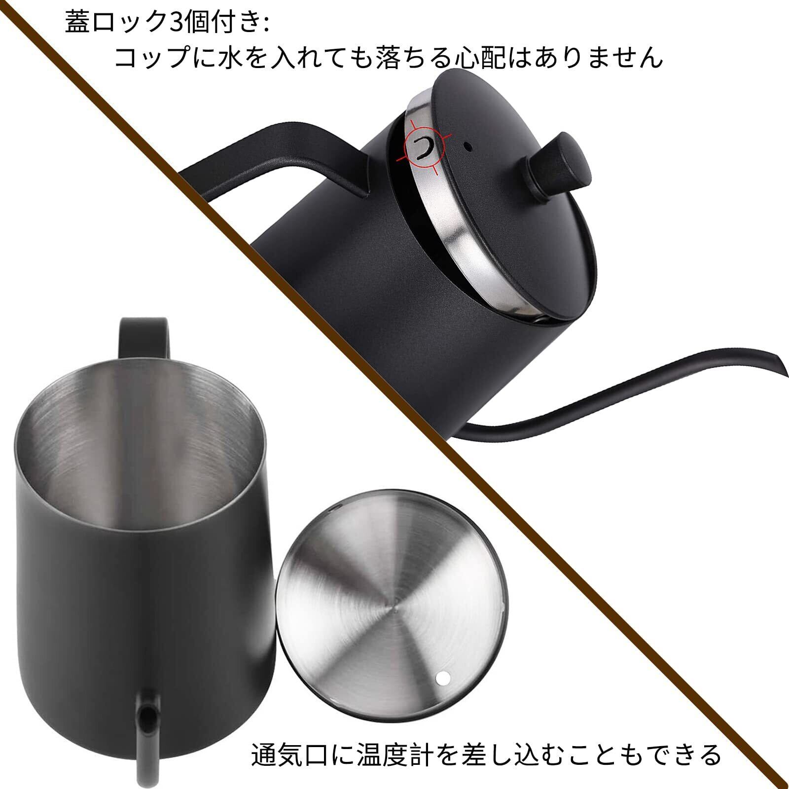 桜花直郵 【日本食品規格検査済み】 600mlコーヒードリップポット 細口コーヒーケトル 珈琲ポット2~3人用 コーヒーメーカー ステンレス コーヒーショップ/キャンプ/アウトドア用 ブラック | BASE SHOP