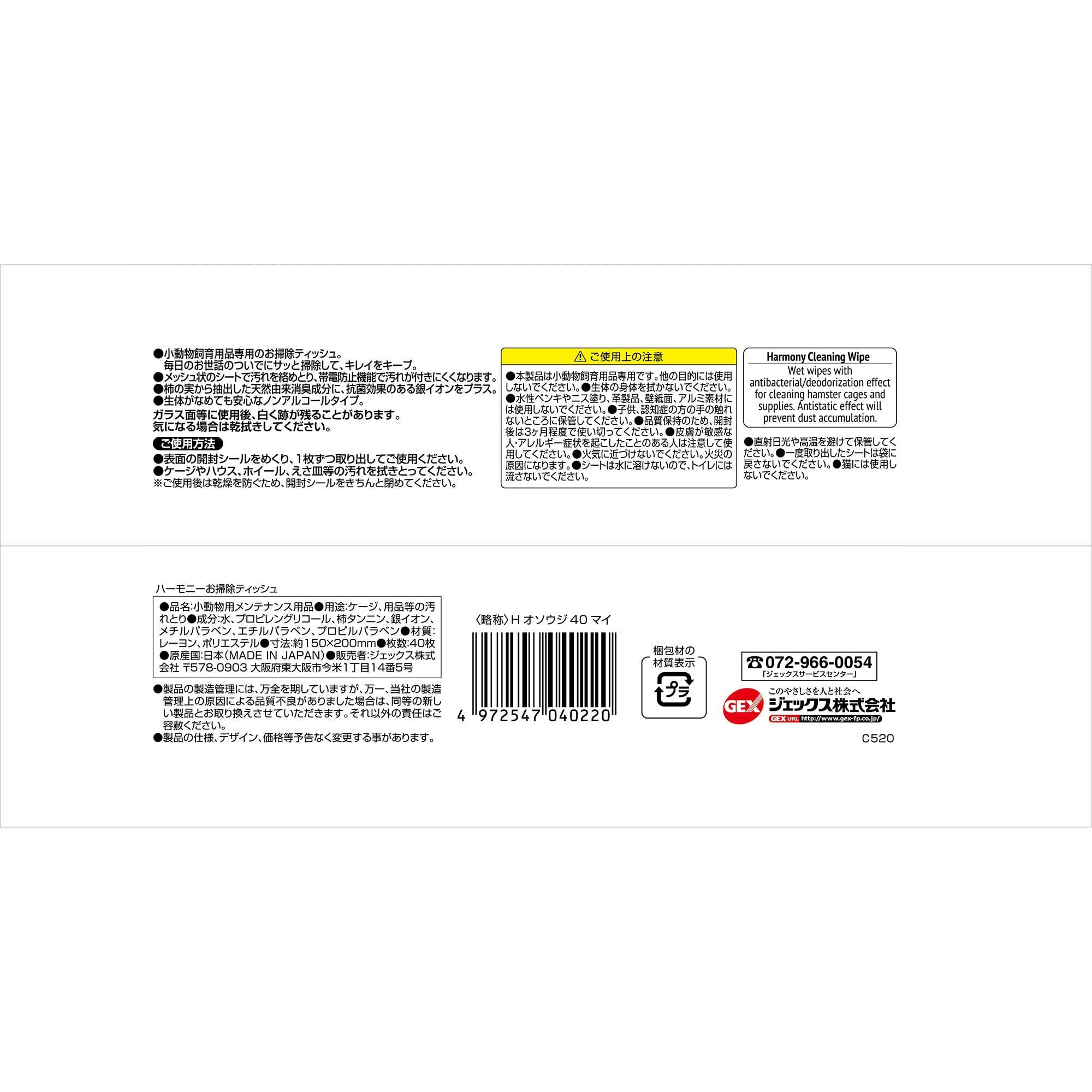 ジェックス Harmony ハーモニーお掃除ティッシュ 消臭・抗菌+帯電防止成分配合 ハムスター・小動物用 40枚入×24個セット | BASE SHOP