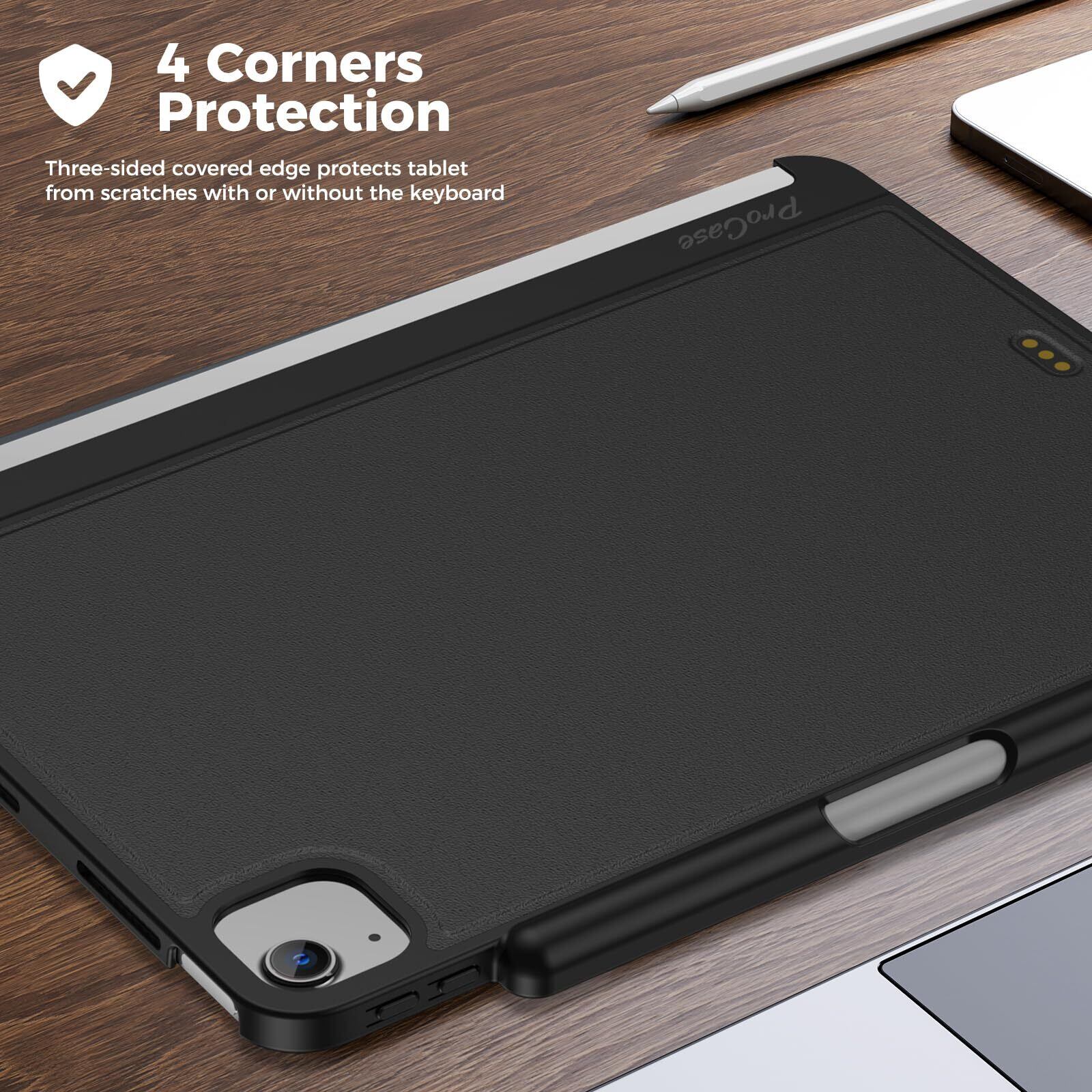 ProCase iPad Air 11 ケース キーボード搭載可能 2024 M2 ペン収納 キーボードカバー 軽量 耐衝撃 適用モデル:iPad Air 5世代 2022/Air 4世代 2020 10.9/ iPad Pro 11 4/3/2/1(ブラック)