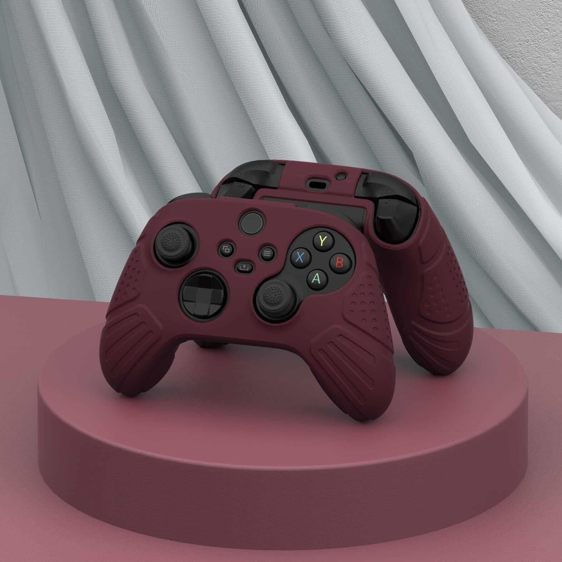 eXtremeRate PlayVital Guardian版Xbox Series X/Sコントローラーに対応用アンチスリップシリコーンカバースキン、ブラックの親指グリップキャップ付き、Xbox Coreワイヤレスコントローラ用ソフトラバーケースプロテクター【ワインレッド】 | BASE SHOP