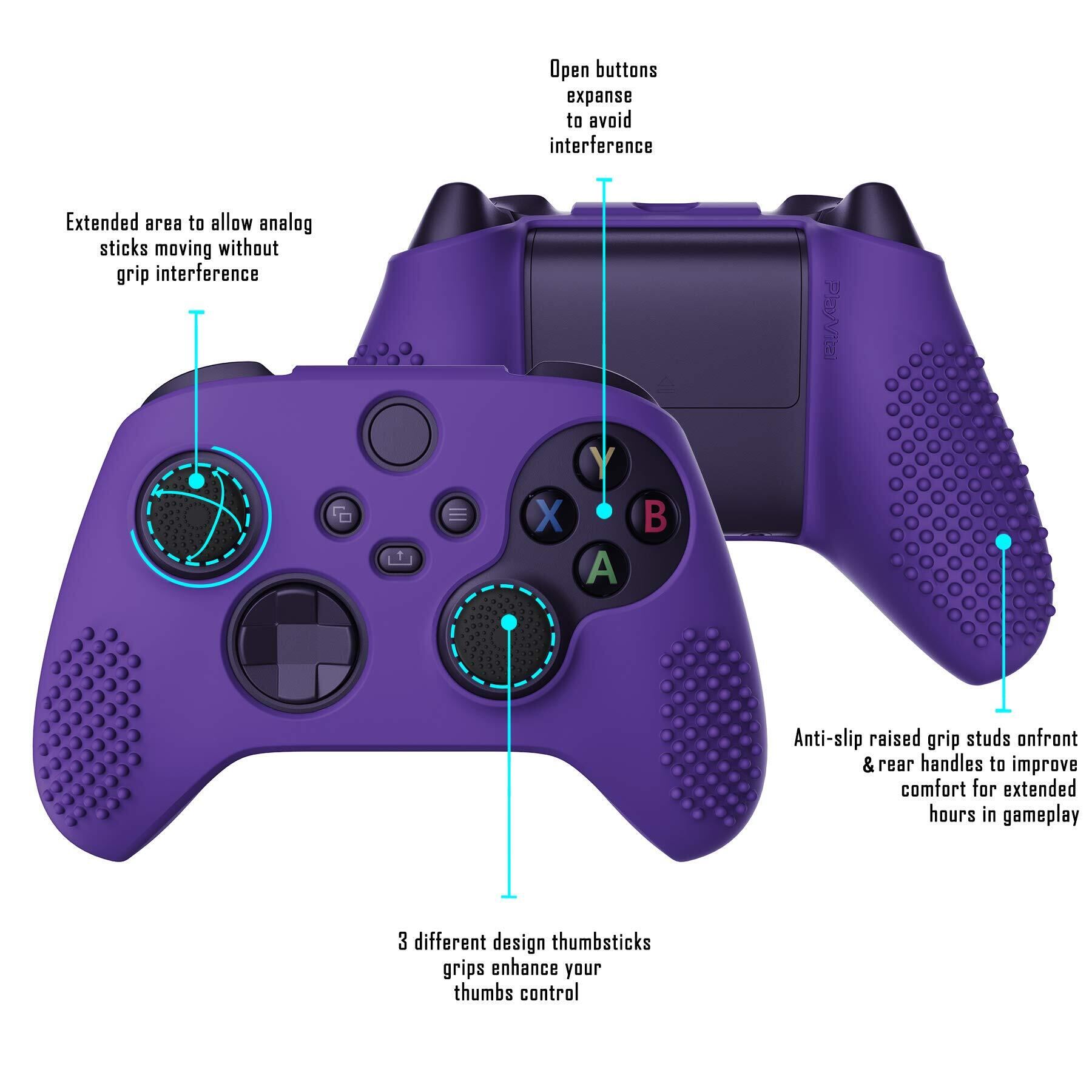 eXtremeRate PlayVital 3D Studded版Xbox Series X/Sコントローラーに対応用アンチスリップシリコーンカバースキン、黒い親指グリップキャップ6つ付き、Xbox Coreワイヤレスコントローラ対応用ソフトラバーケースプロテクター【パープル】