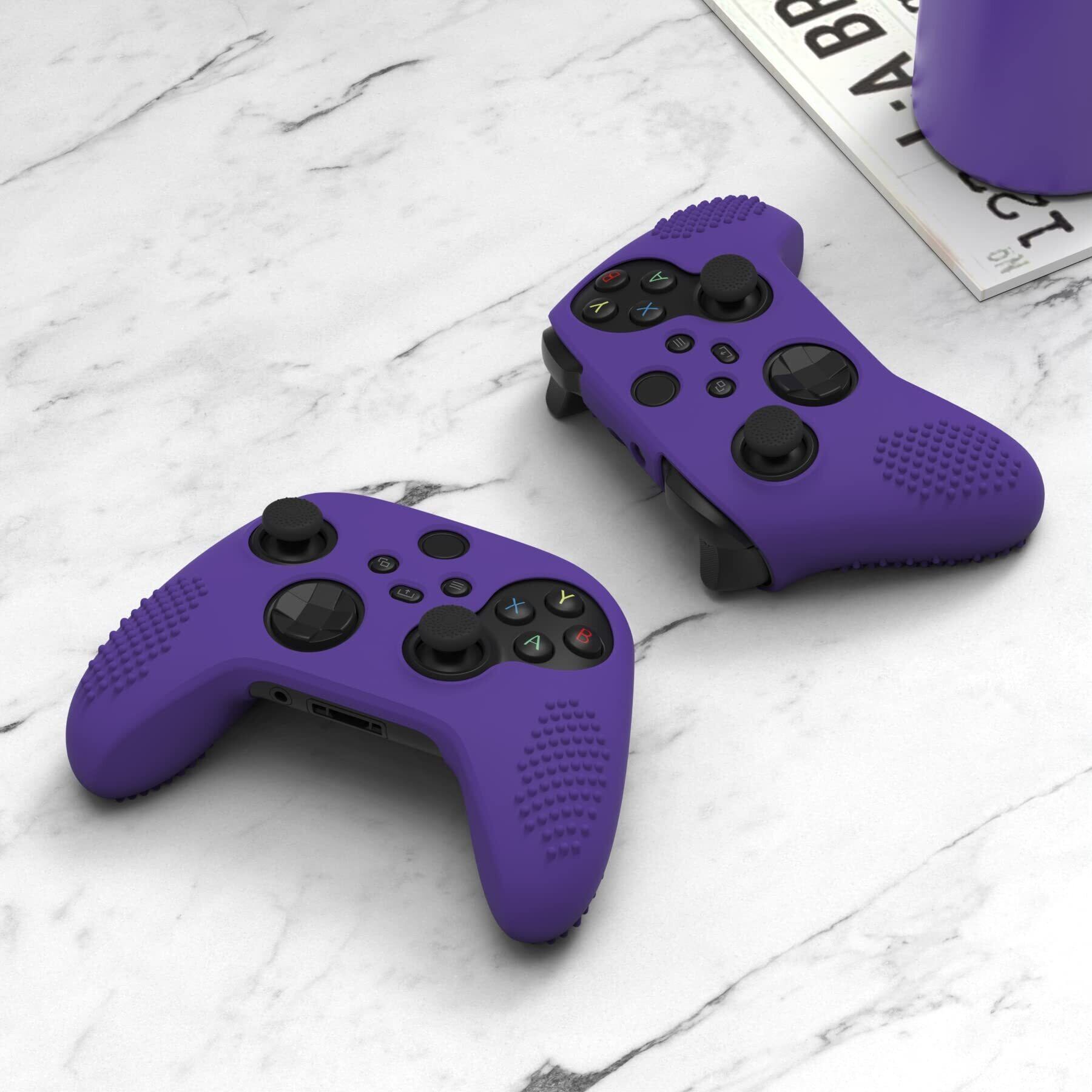 eXtremeRate PlayVital 3D Studded版Xbox Series X/Sコントローラーに対応用アンチスリップシリコーンカバースキン、黒い親指グリップキャップ6つ付き、Xbox Coreワイヤレスコントローラ対応用ソフトラバーケースプロテクター【パープル】 | BASE SHOP