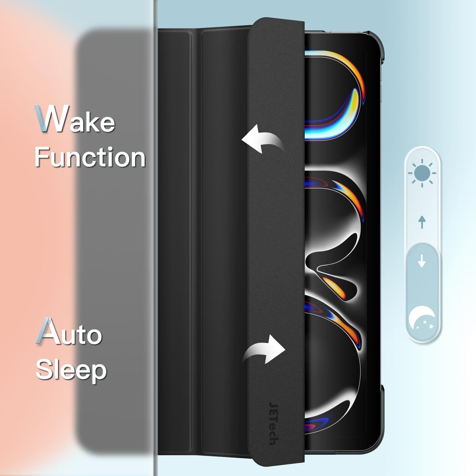 JETech iPad Pro 11インチ M4 2024 (第5世代) 用ケース スリムスタンド ハードバック ウェイクアップ/オートスリープ機能付き タブレットスマートカバー (ブラック)