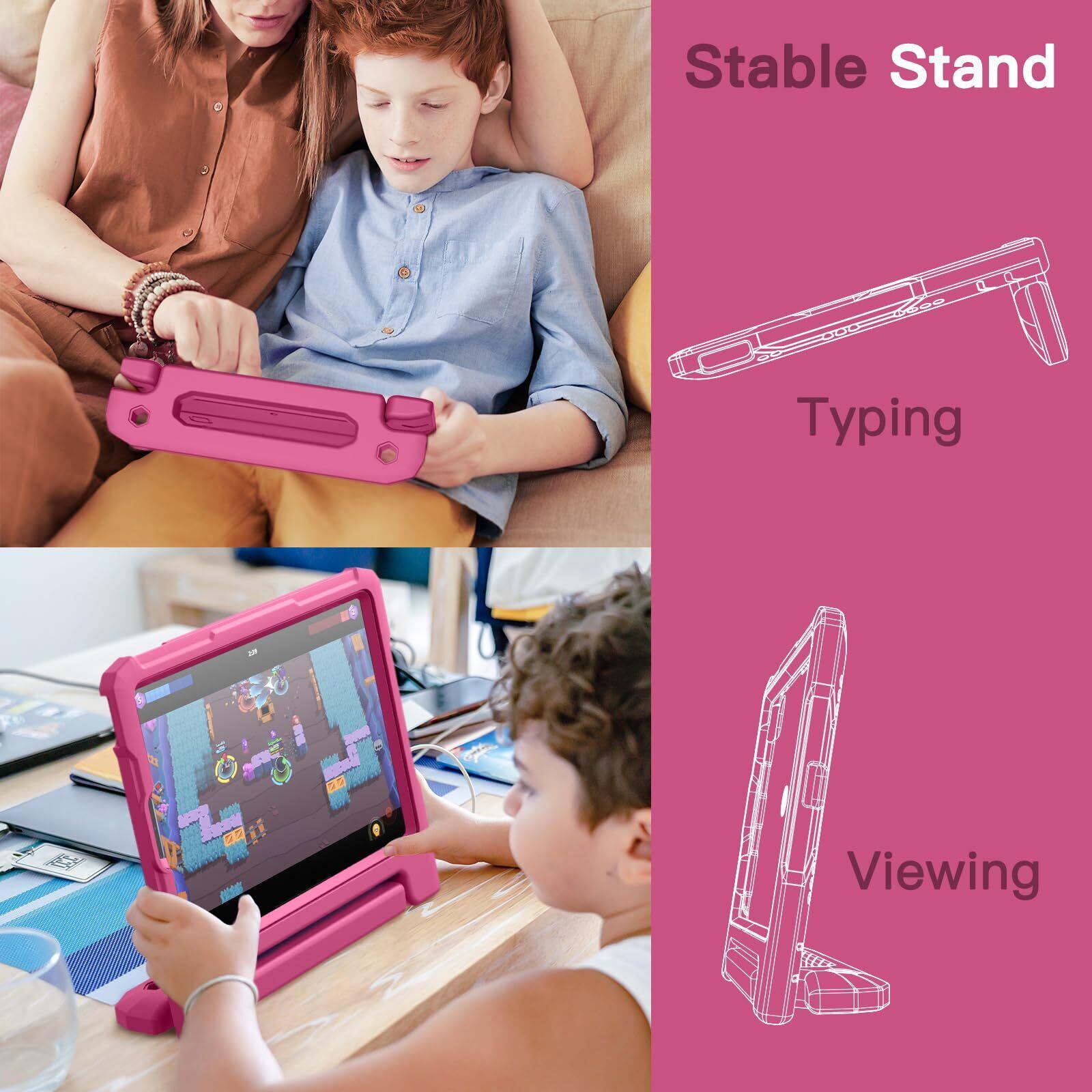[多目的スタンド] 滑り止めの風合いで子供に優しいハンドルのデザインです。持ち�びやすいし、両手を解放して自由に視聴を体験するあるいは快適なタイピングのために折りたたんで、頑丈なスタンドに変えるのも易しいことです
