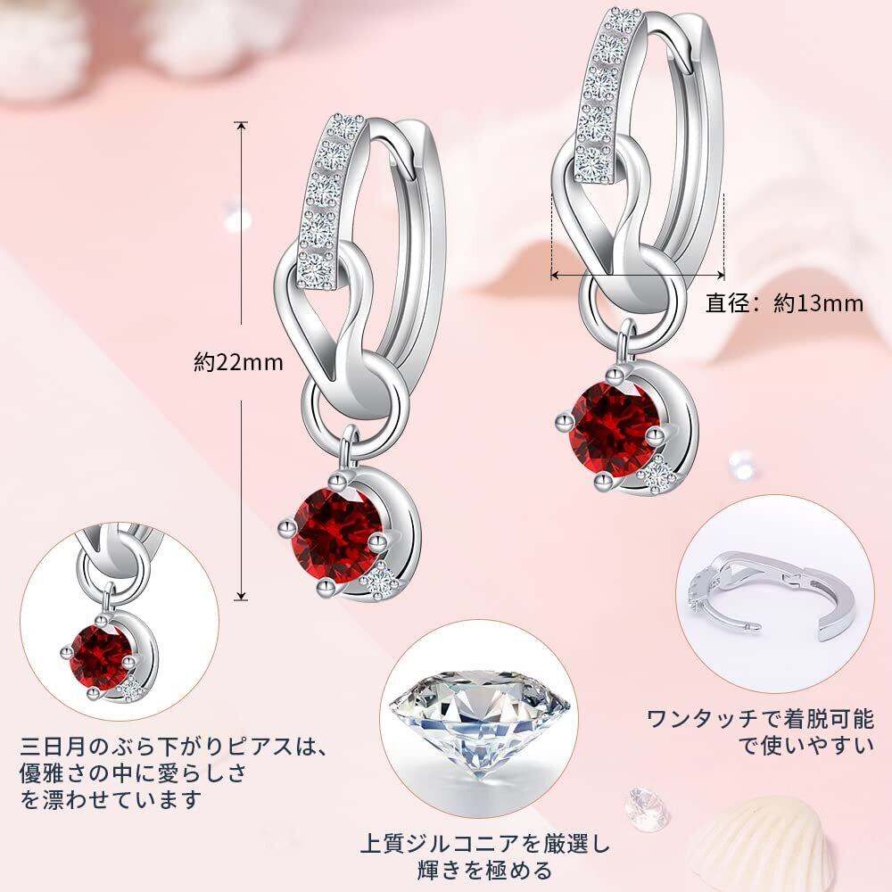 YUIITU ピアス レディース 人気 上質ジルコニア 誕生石 フープ ピアス 揺れる 2Way ピアス 金属アレルギー対応 ピアス 18金 プラチナメッキ シルバー925 ピアス おしゃれ 三日月 ピアス 大人 アクセサリー プレゼント 誕生日 結婚記念日
