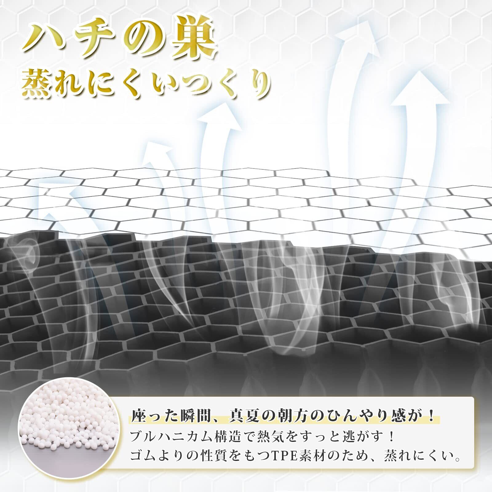 【蒸れぬゲル座布団】今話題のハニカム構造ゲルクッション、ハニカム構造が二層になっており、ゲル素材ならではのひんやり感と相まって、通気性も◎。一般的なクッションと比べてダントツに蒸れにくいゲルクッションです。