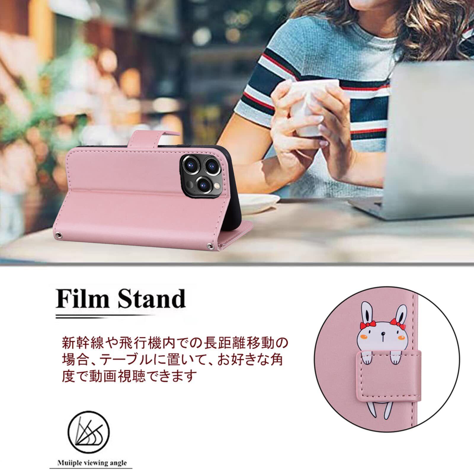 iPhone 14 Pro Max ケース手帳型 iPhone14 Pro Max ケース iPhone14Promax 手帳型 ケース iPhone 14 ProMax 手帳 アイフォン 14 プロマックス ケース スマホケース カバー 携帯ケース 携帯カバー あいふぉん手帳型ケース iPhone14Promax case PUレザー 柔らかいTPUケース 肌触り良い革 ストラップ付き カード収納 財布型 ベルトマグネット スタンド機能 兔 かわいい 動物柄 薄型 防水 ノート型 女性 男性 おしゃれ 男女兼用 (For iPhone 14 Pro Max 6.7 inch 対応) ゴールドピンク