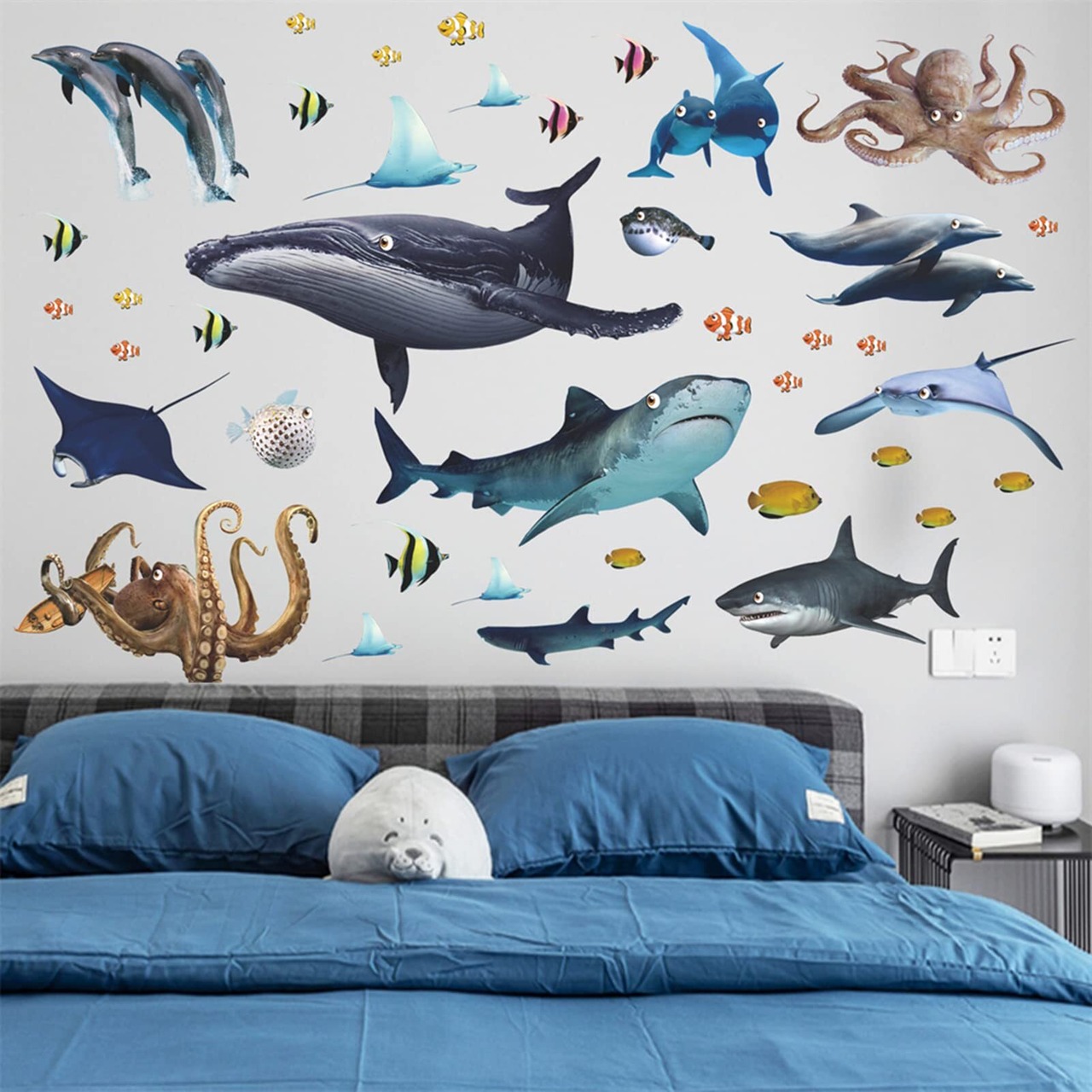 Condessacity ウォールステッカー 海 魚 海の中 海の生き物 海の冒険 ウォールシール サメ クジラ イルカ タコ ウォールすてっかー かわいい 動物 ウォールペーパー 子供部屋 DIY 用 シール 幼稚園 保育園 男の子 女の子 toy house wall stickers バスルーム デコレーション ビニール 寝室用 ウォールアート 壁紙 家具 部屋用 処理 ウォールデコ 剥がせる 防水 すてっかー | BASE SHOP