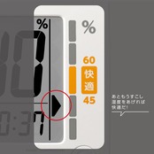 【お部屋の快適な状態がわかる】画面両端の5段階カーソルは現在の温度・湿度を表示しています。中央オレンジの「快適」を指していればお部屋の温湿度が適度な状態、それ以外を指している場合は調節することをおすすめしています。温度・湿度のどちらを上下させれば快適な環境になるのかが直感的に分かるようになりました。
