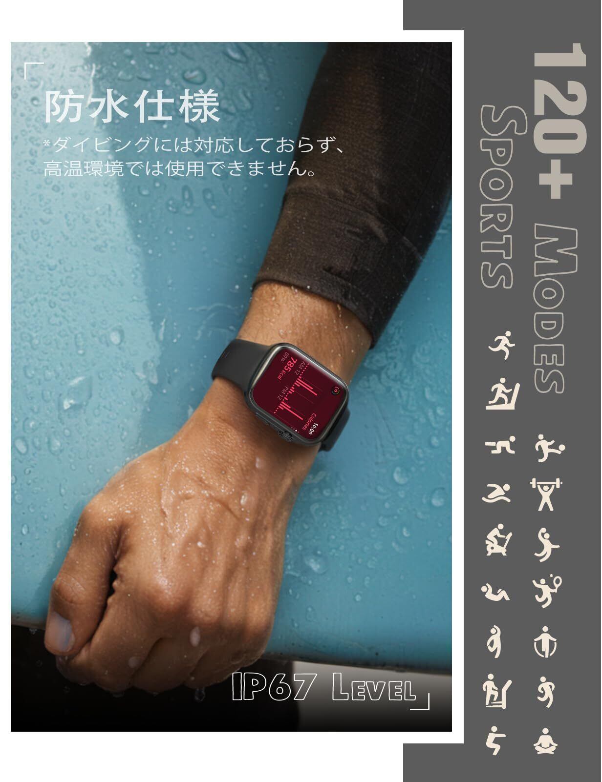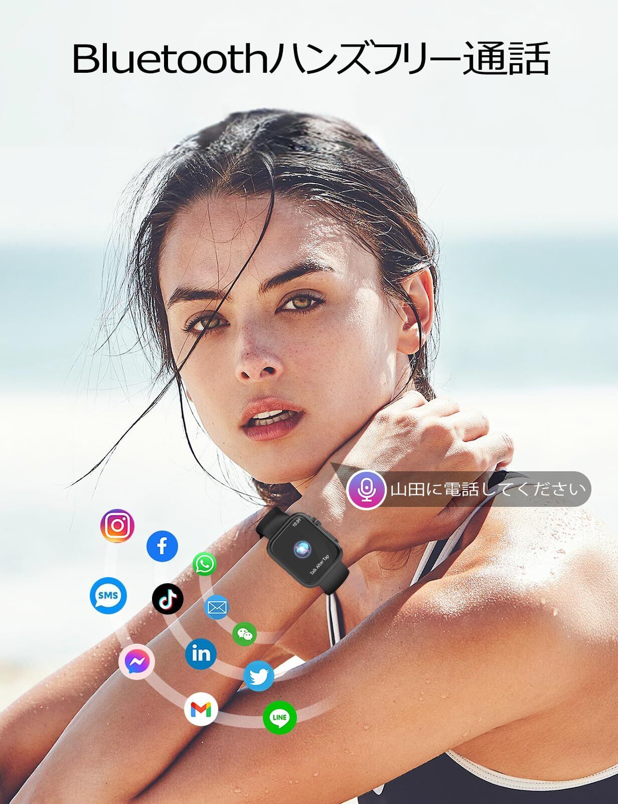大画面で快適操作・メッセージ通知機能:1.91インチの高解像度ディスプレイ(240×284ピクセル)を搭載し、鮮明で明るい画質を提供。大きな画面により、SMS、LINE、Instagram、メールなどのメッセージ通知をリアルタイムで確認でき、送信者名や内容も一目で把握できます。広い操作領域により、タッチ操作ミスが減少し、快適な操作感を実現。また、腕を上げると自動で画面が点灯する機能も搭載しており、日常的に便利で使いやすいです。さらに、文字盤はスマートフォンからワンタッチで簡単に変更でき、気分やスタイルに合わせたカスタマイズが可能です。