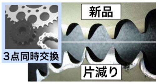 スプロケットは消耗品です。一般走行時目安として約1000km走行ごとにスプロケットの点検を行って下さい(歯先が細くなっている場合は交換して下さい。日常の注油によりスプロケット及びチェーンの寿命は格段に向上します)