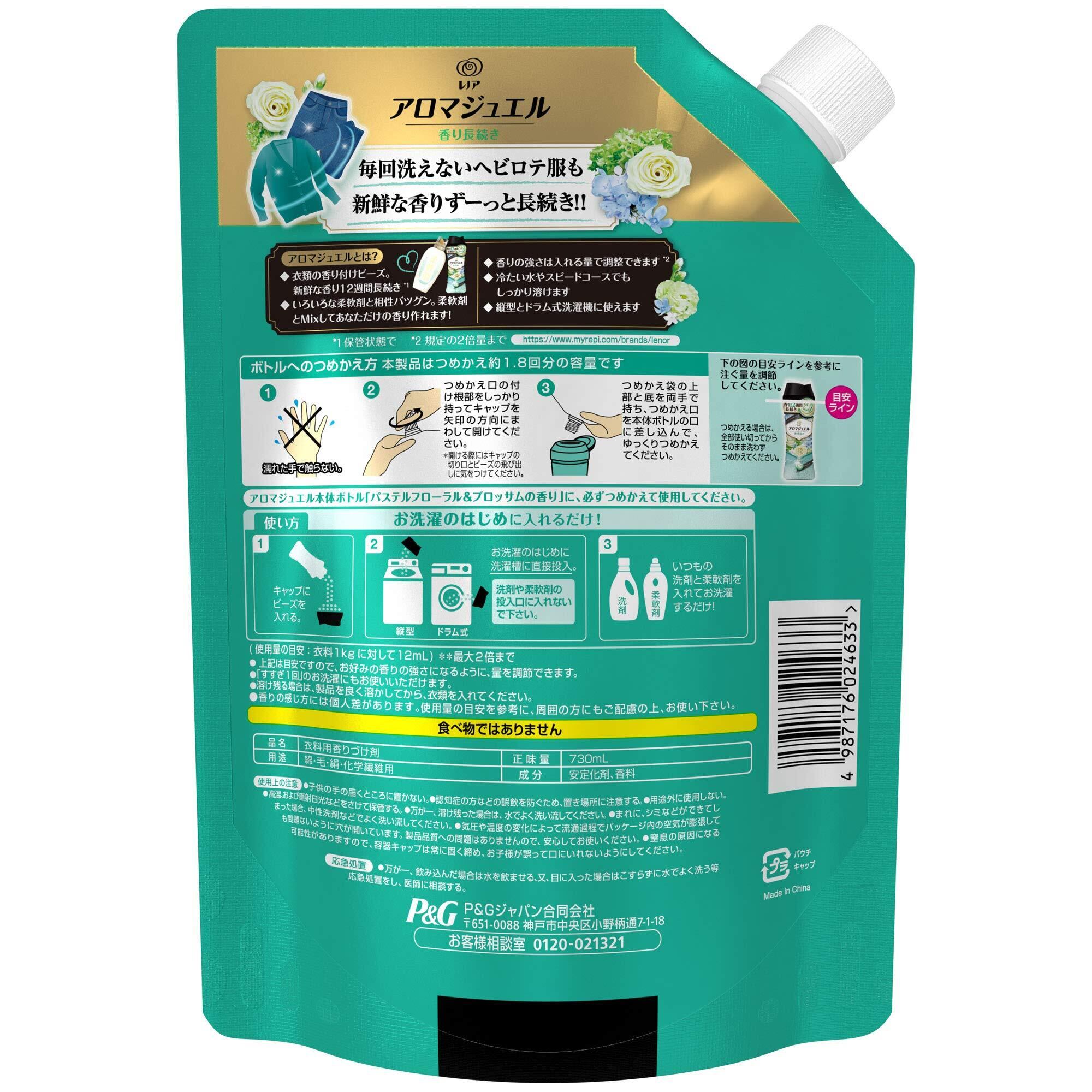 衣類の香り付け専用ビーズ レノアハピネスアロマジュエル パステルフローラル&ブロッサムの香り つめかえ用 本製品の内容量は通常詰め替え(415mL)の約1.8倍(730mL)です。