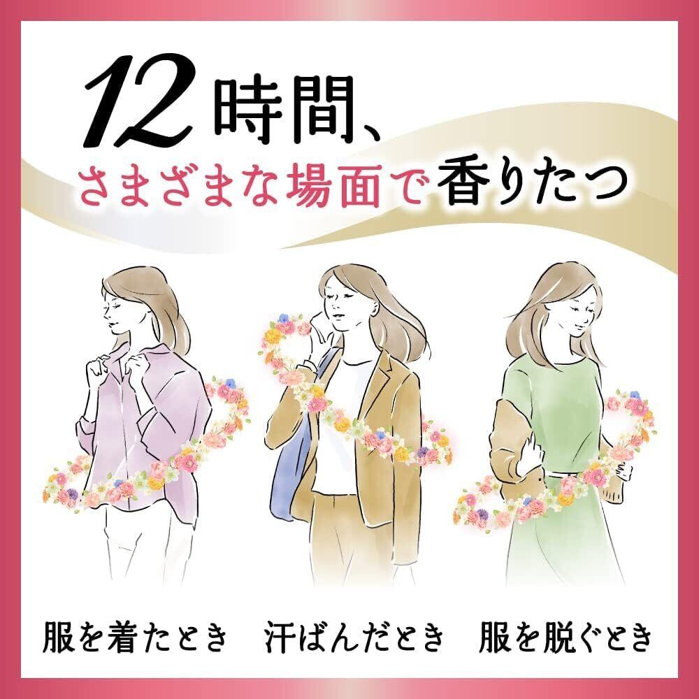 周囲に広がりすぎず、私だけを包みふわっと香る「私だけ発香」で、ノンプンプンでいきましょう。 より自然にやわらかく香る独自のミネラルアロマ採用、12時間香りが続きます。 ふんわり、素肌に心地いいやわらかさに。抗菌*・防臭・静電気防止・洗濯ジワ防止効果も ●穏やかなホワイトブーケの香り *すべての菌の増殖を抑制するわけではありません