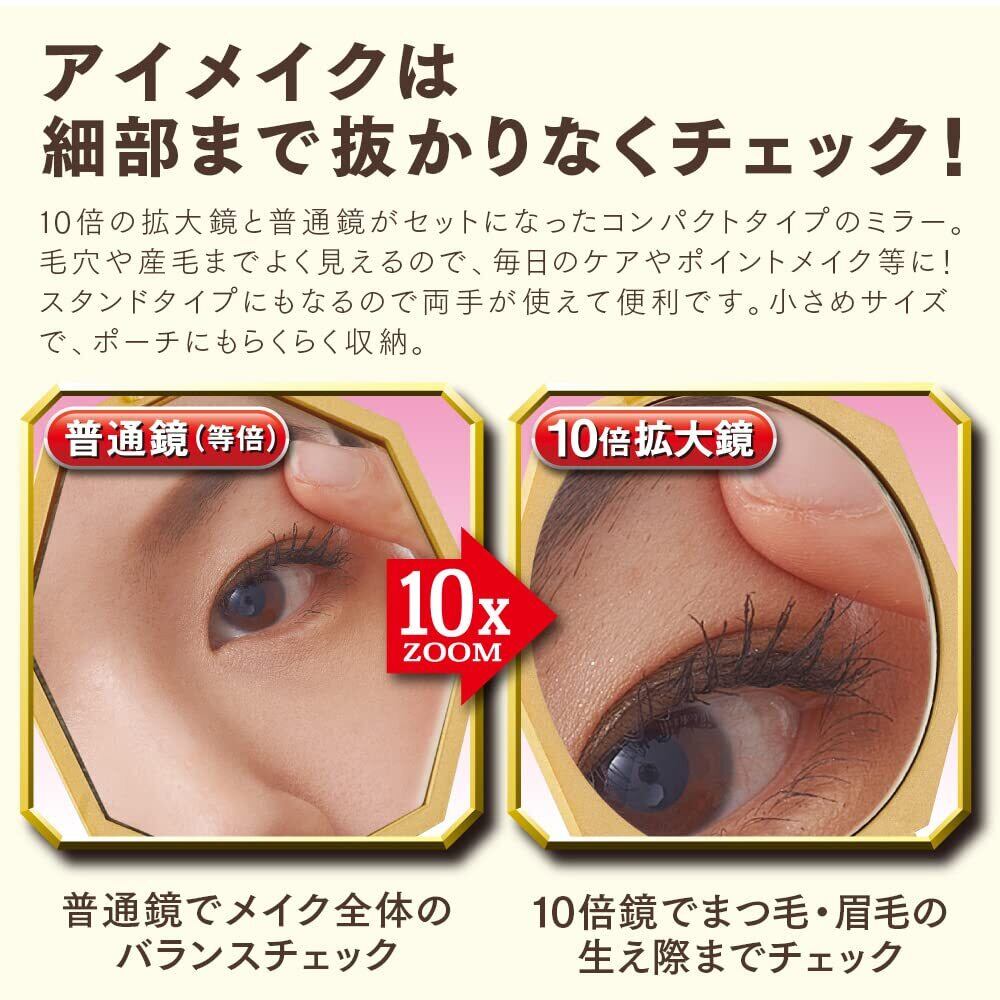 アイメディア 両面コンパクトミラー 手鏡 10倍拡大鏡 携帯ミラー メイクミラー 折りたたみ鏡 化粧鏡 八角 風水