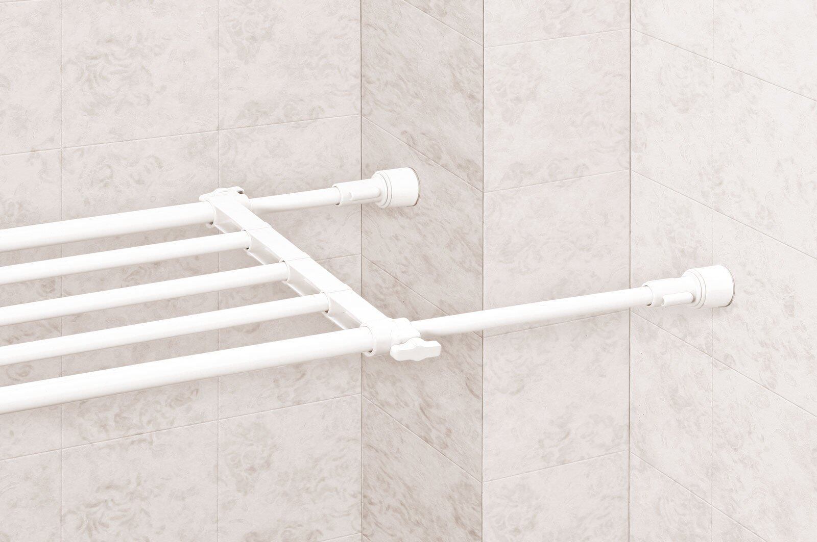 いろんな空間を簡単にムダなく効率化できる突っ張り棚。段差のある壁にも取り付けできる。