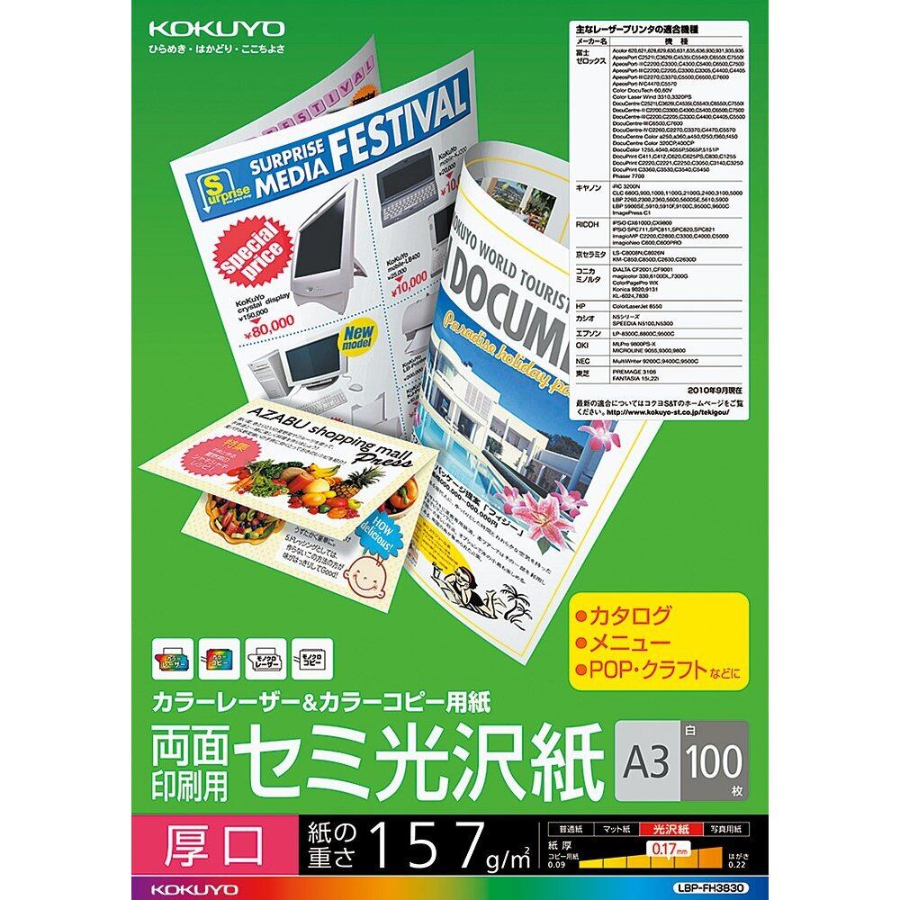 コクヨ(KOKUYO) カラーレーザー カラーコピー 両面印刷 セミ光沢 厚口 A3 100枚 LBP-FH3830