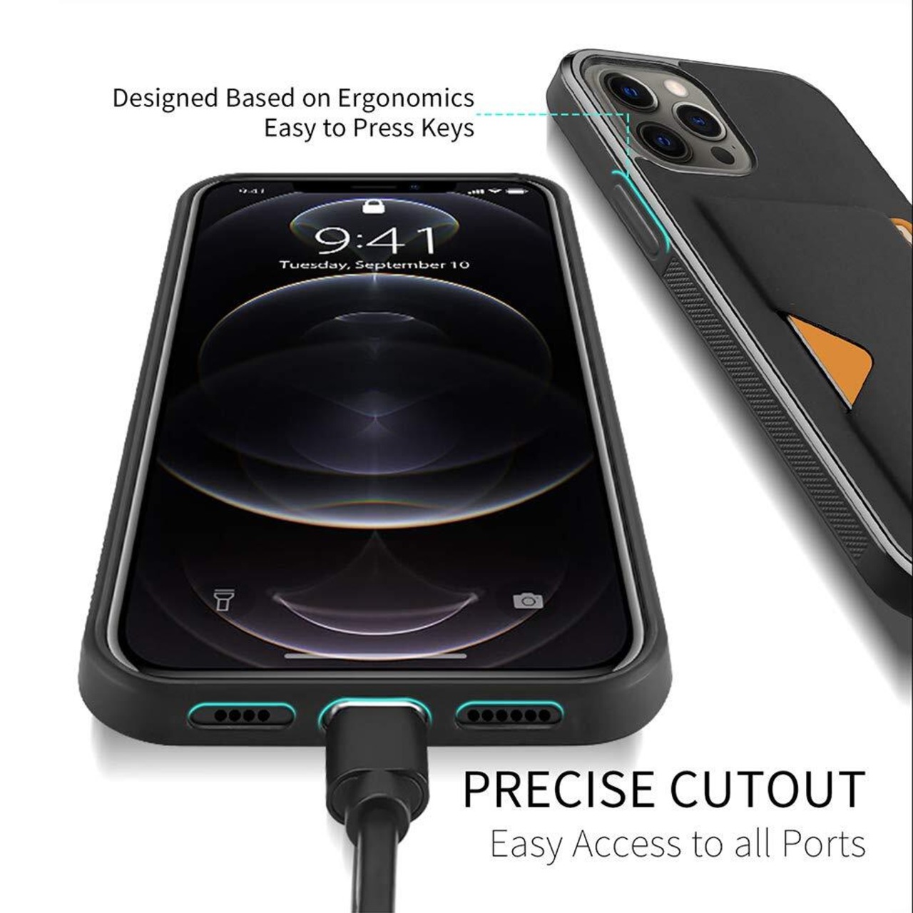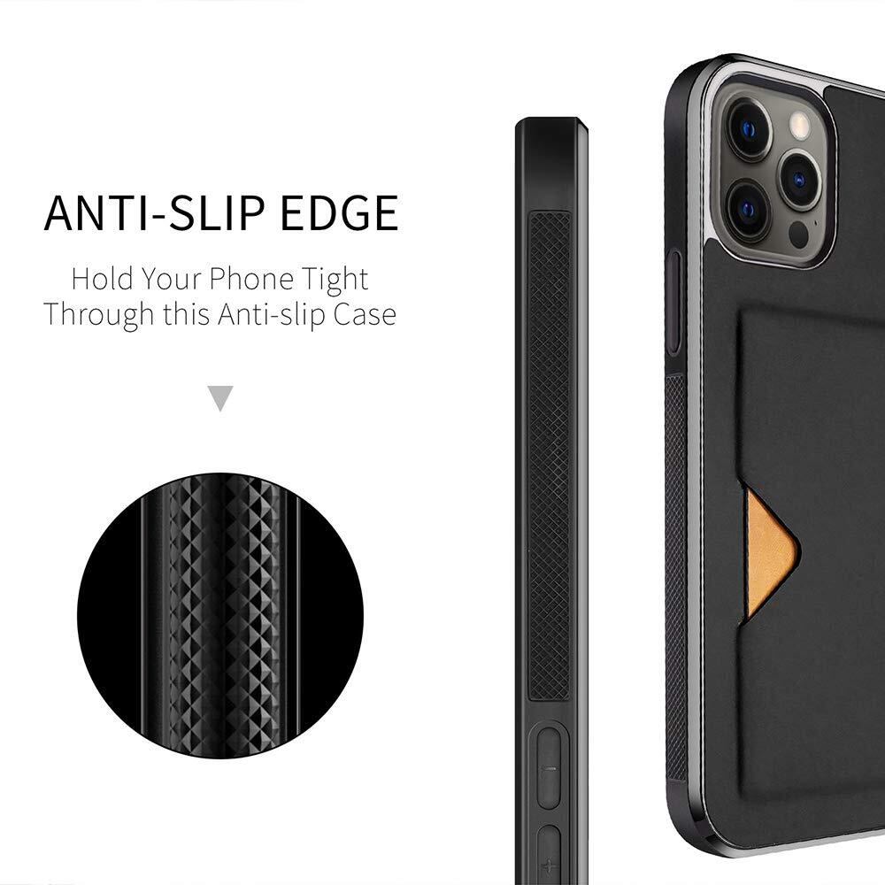 【背面カード収納付】 iPhone 12 ケース iPhone 12 Pro ケース カード収納 上質な手触り アイフォン 12 アイフォン 12 プロ カバー 耐衝撃 軽量 薄い IC OWLGuardian スマホケース (iPhone 12/ iPhone 12 Pro ブラック) | BASE SHOP