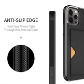 【背面カード収納付】 iPhone 12 ケース iPhone 12 Pro ケース カード収納 上質な手触り アイフォン 12 アイフォン 12 プロ カバー 耐衝撃 軽量 薄い IC OWLGuardian スマホケース (iPhone 12/ iPhone 12 Pro ブラック)