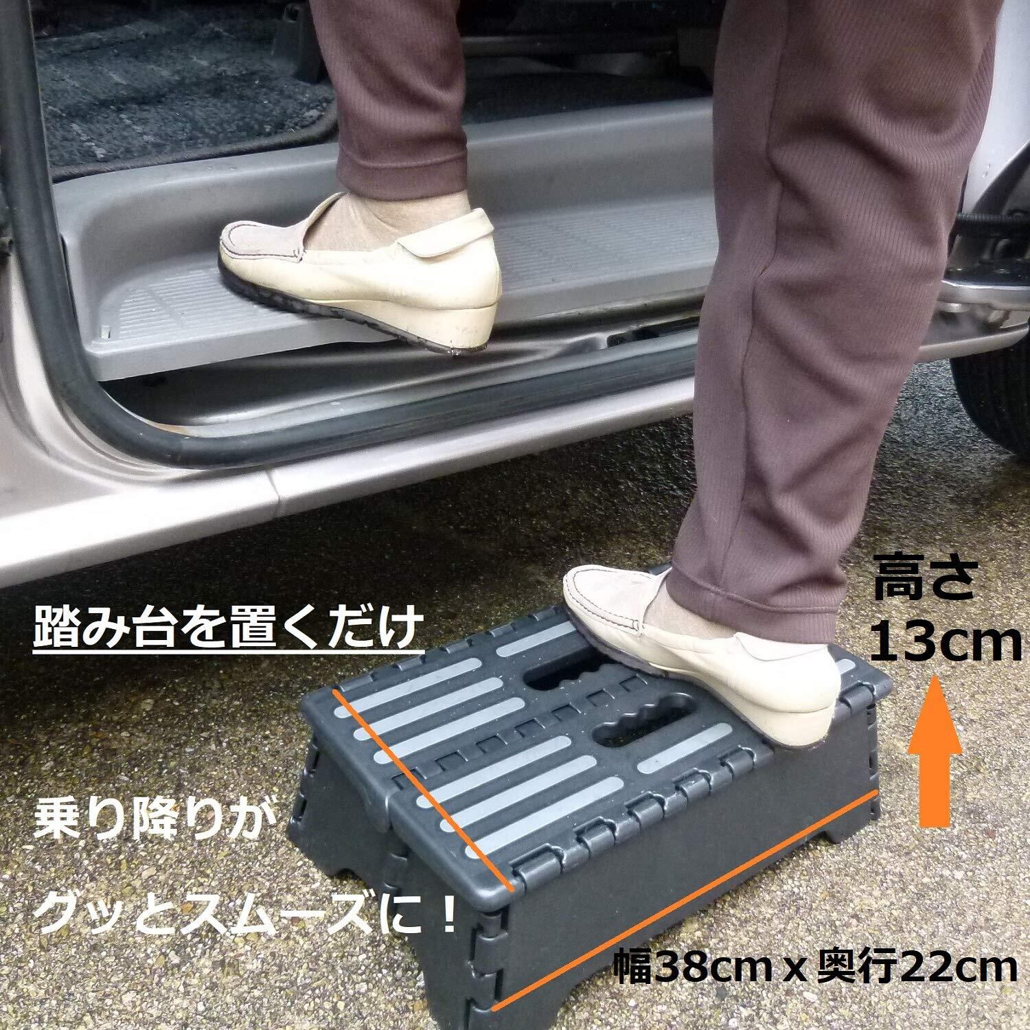 【2024年国内において静荷重の品質検査済】 踏み台を折りたたみでき車の乗り降りにもコンパクト収納可能な持ち運べる便利グッズ 低い 踏み台 足置き台。従来の滑り止め付きに新しくサイド折りたたみ箇所、ツメ幅 仕様変更により安定してお使いいただけます。高さ13cm。段差のある場所に置き、乗降ステップなどの乗り降りがしやすくなる補助ステップ。折りたためて収納がコンパクトだから椅子やデスクとの高さ調整、デスク 下の足置きとしてとっても重宝!こどもから大人の方まで日常生活をよりよくする多機能 折りたたみみ踏み台。足をのせる台の部分には汚れが目立ちにくいダークグレーの滑り止めを採用。車の乗り降り、足置きに便利な低い 踏み台 折り畳みタイプ。使い終わったあとは家具やいす、ソファ、テーブル、机、座席下など足元にさっとコンパクト収納いただける嬉しい5cm幅 軽量タイプ。折り畳み両サイドの接続部分ははずれにく丈夫な仕様のタイプになっておりますがロック機能付きではございません。天面すべりどめのゴムに製造時のヘコミがある場合がございますが、不良ではなく機能的には問題ございませんのでそのままお使いください。