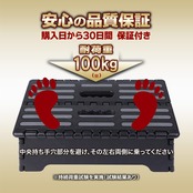 【サイズ・素材・色】:使う場合 開いた状態 (約)幅38×奥行22×高さ13cm(ご注意:高さは10cmではありません。天板中央には乗らないでください。) 折り畳み 閉じた状態: (約)幅40×高さ24×厚さ5cm、重さ(本体):約1200g、メイン素材:プラスチック、色:黒色、 滑り止め付き 改良点:両サイドの内側に折りたたむ箇所を筒型形状へ、また天面にあたるツメ幅を約1.4cmから約1.9cmへ長くすることでより安定感がアップしました。 静耐荷重:約100キロ【ご注意】中央部は持ち手を考慮した構造の踏み台となります。持ち手部分は乗らないでください。表示の数値は静荷重による耐荷重負荷試験の数値となります。衝撃力を考慮したものではありません。静耐荷重以上の荷重をかけたり、耐荷重以内での急な衝撃は与えたりしないでください。耐荷重の数値は測定値のため保証値ではありませんことをあらかじめご了承願い願います。踏み台に上方から天板へ飛び降りること、イスとして使用すること等は危険ですのでおやめください。添付の取扱説明書をお読みの上適切にお使いくださいませ。(※2024年7月静荷重 品質検査済み)
