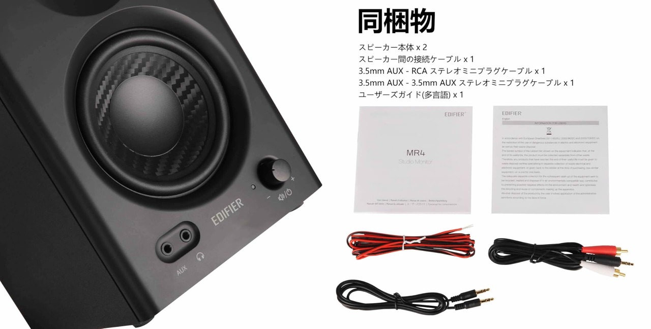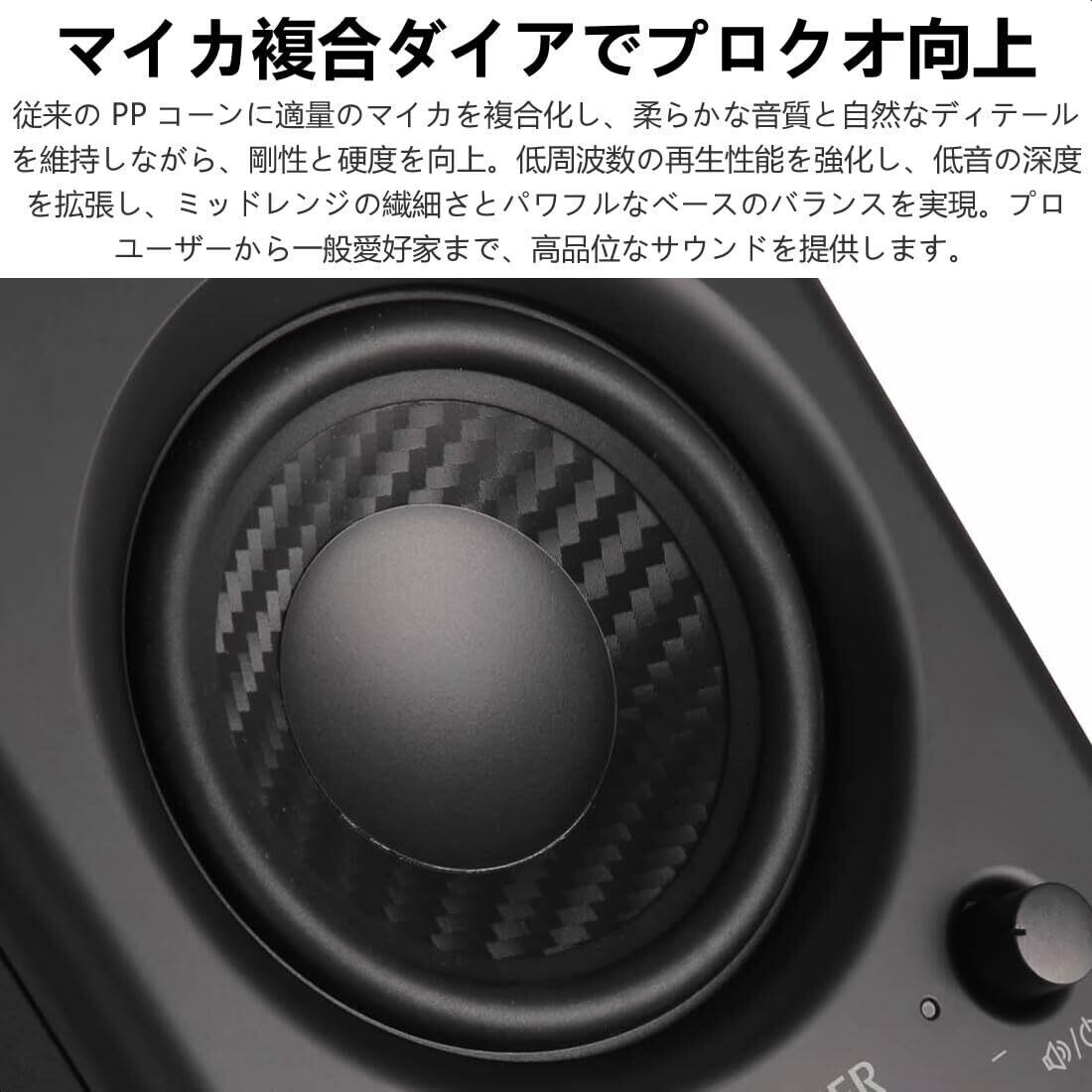 Edifier MR4 42W モニタースピーカー、4インチ中低音スピーカー 音質高、PC dtm 作曲 スタジオモニター用有線外付けスピーカー、TRSバランス/RCA/AUX入力、3.5mm ヘッドホン端子出力、アンプ内蔵 2台1組 黒 | BASE SHOP