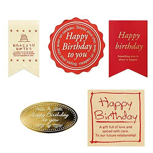 ギフトシール HAPPY BIRTHDAY 誕生日 リボン型 赤 (60枚) MSY-2S