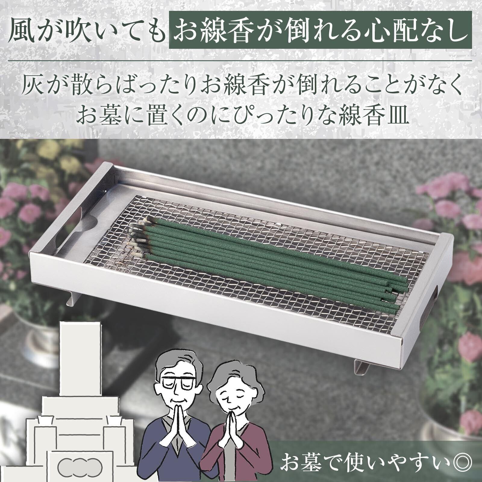 風が吹いてもお線香が倒れる心配なし!
