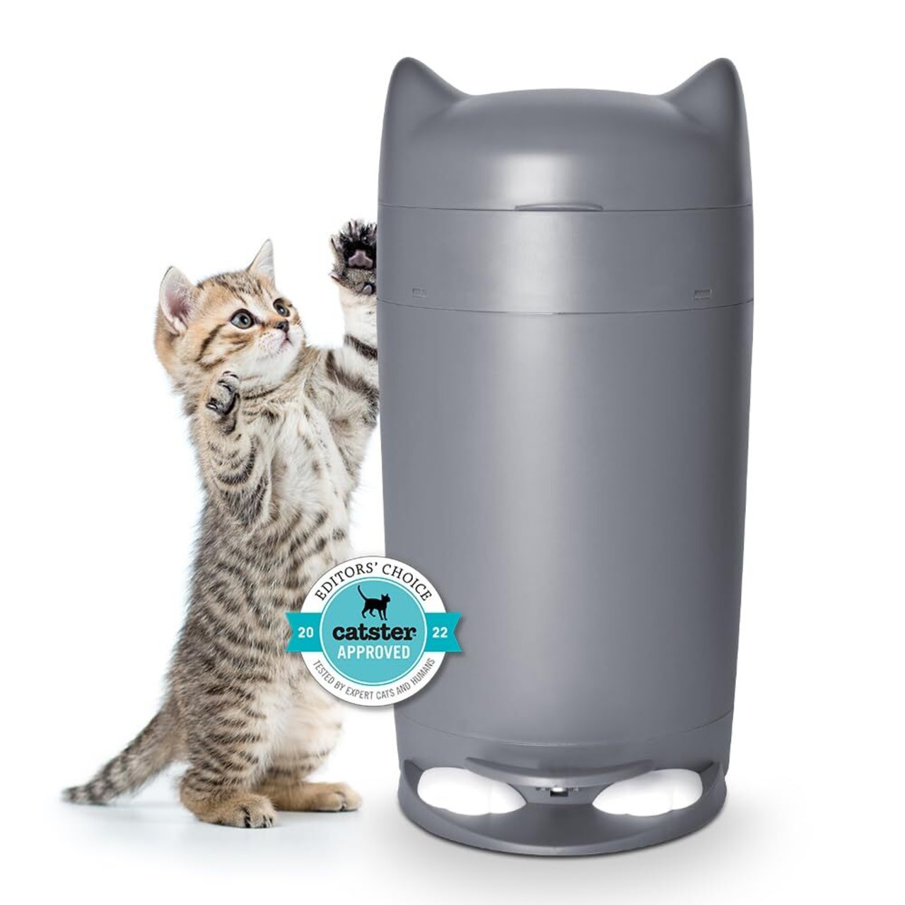 防臭ゴミ箱 臭わない 猫砂ごみ箱 消臭 密閉 シールズ フタ付き ゴミ箱 Kitty Twist'R 猫の形 猫トイレ ペット用 犬猫 おむつ (グレー・ペダル)