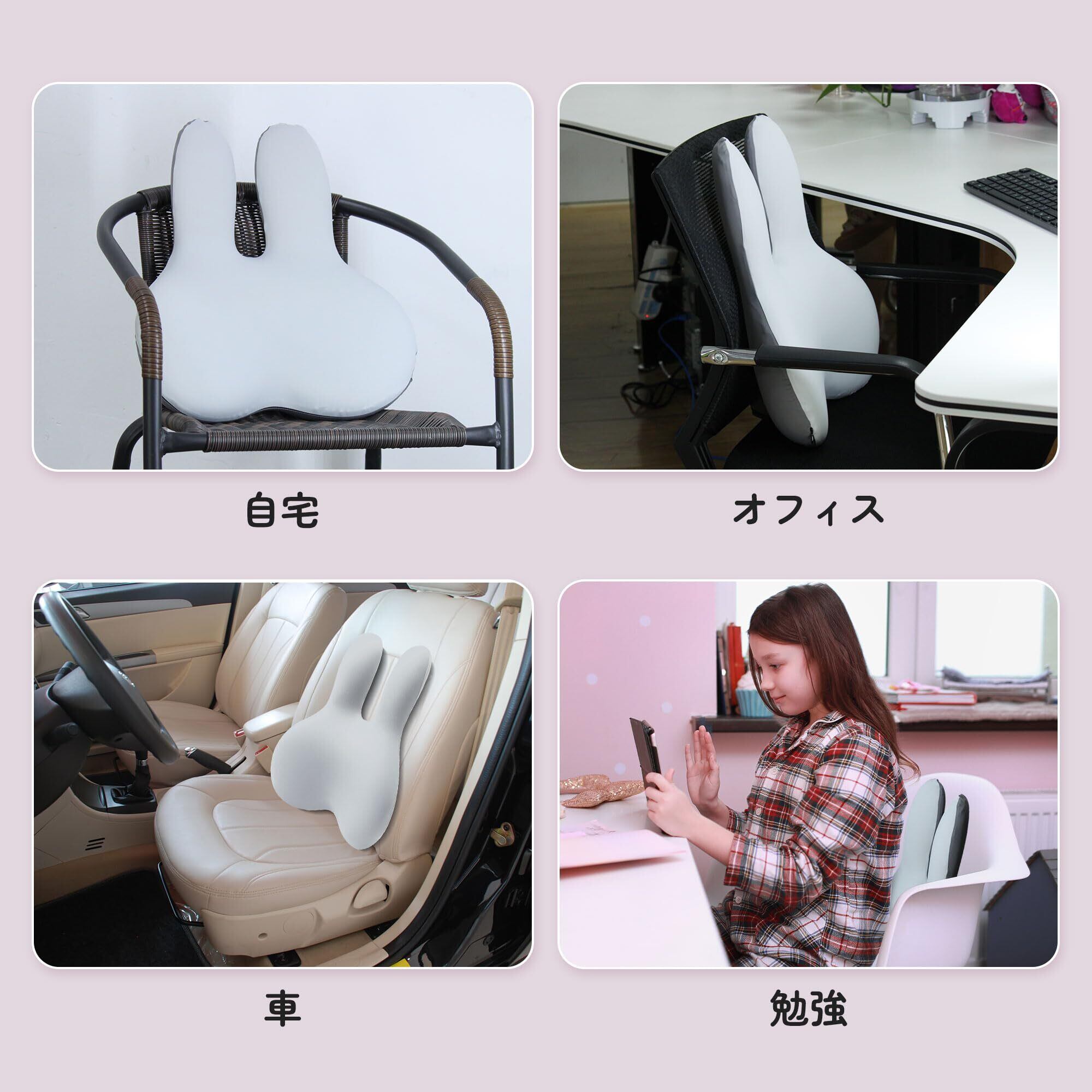 brontier 腰 クッション ウサギ 車 腰痛 クッション 背もたれ 蒸れない かわいい ランバーサポート 人間工学 低反発 肌に優しい バンド付き 調節可能 洗濯可能カバー 勉強 オフィス 運転 プレゼント (ネイビー) (グレー) | BASE SHOP