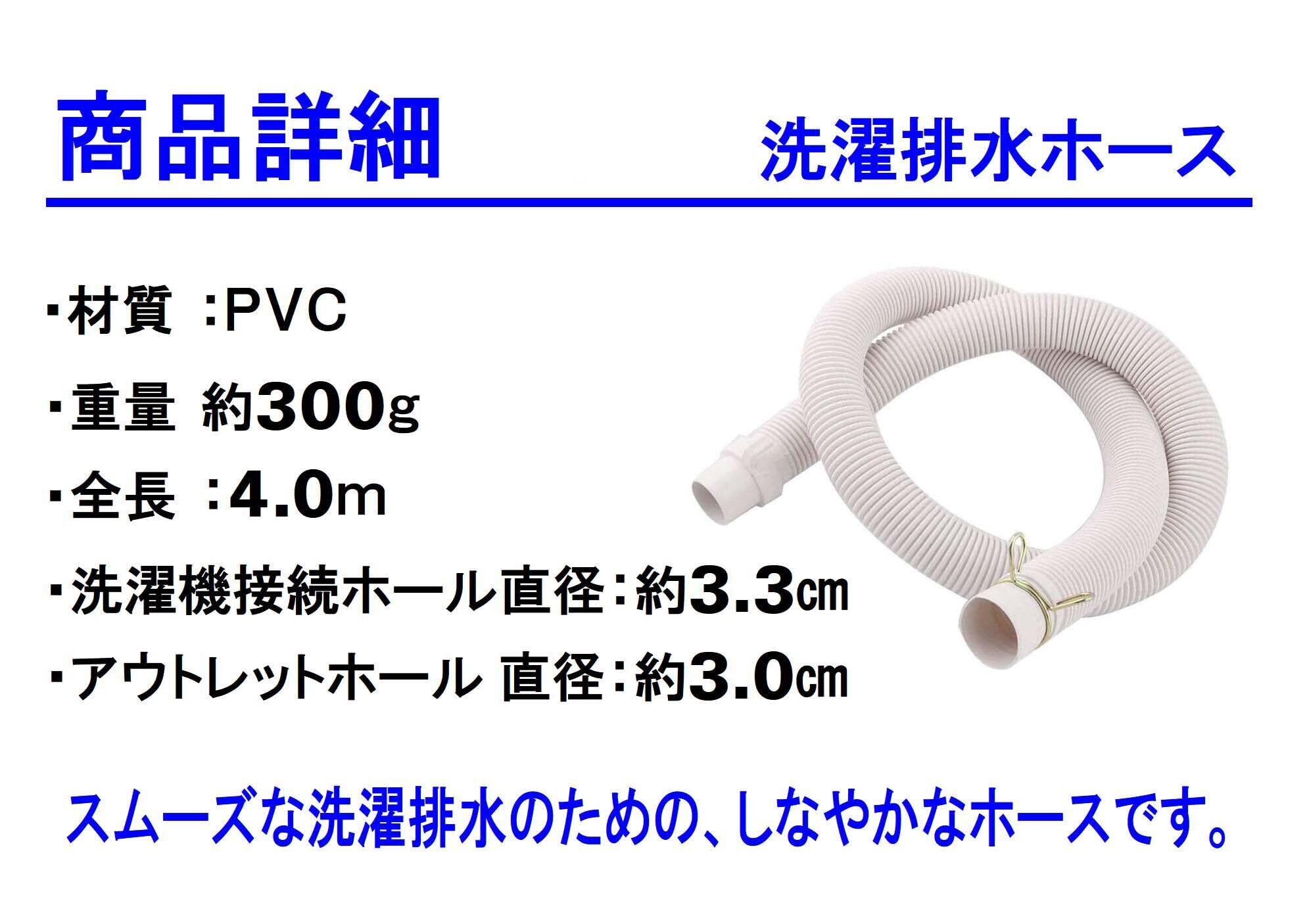 monomania 洗濯機 排水ホース 全6種 全自動 ドラム 排水管 パイプ ホース クリップ付き (4m)