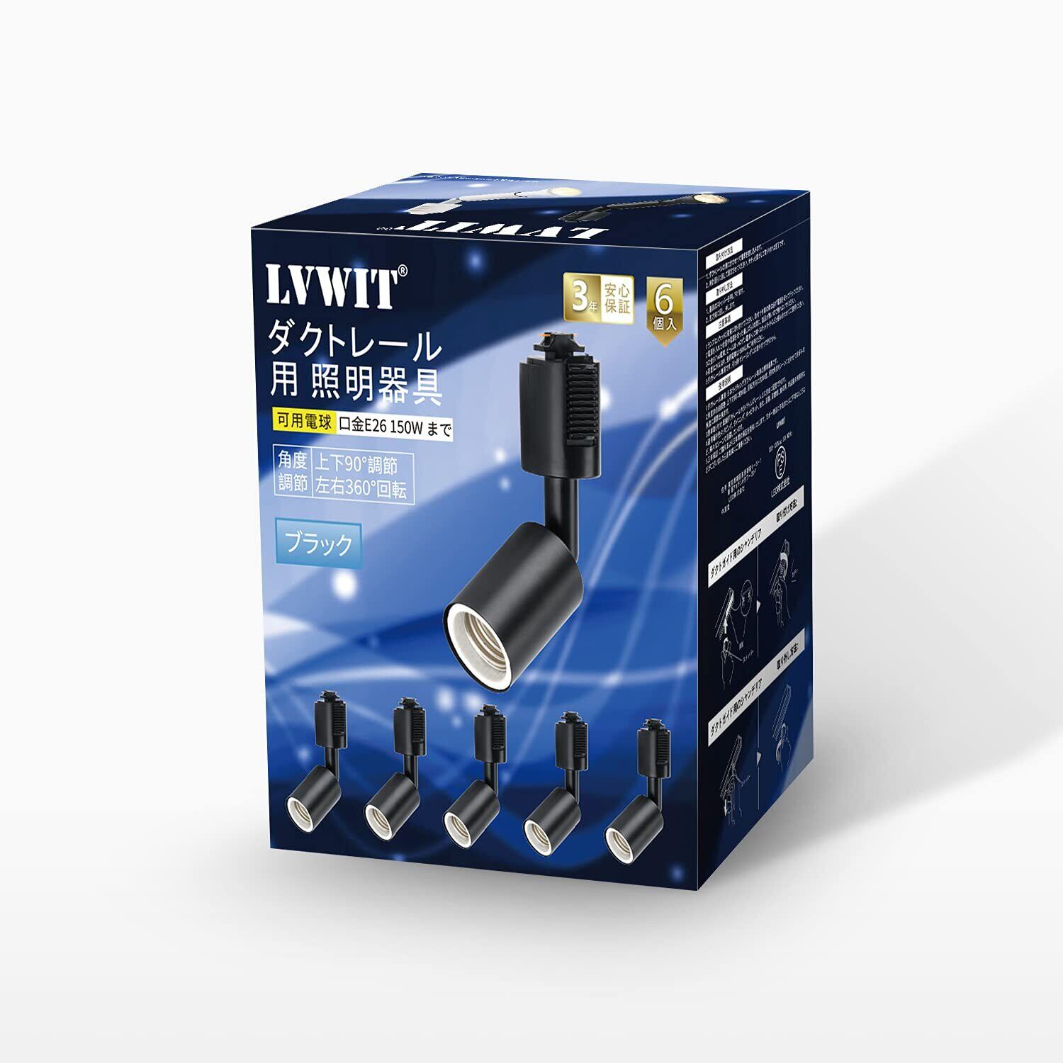 LVWIT ライティングレール用 スポットライト E26口金 ソケット ダクトレール用照明器具 角度調節可能 ブラック 6個セット